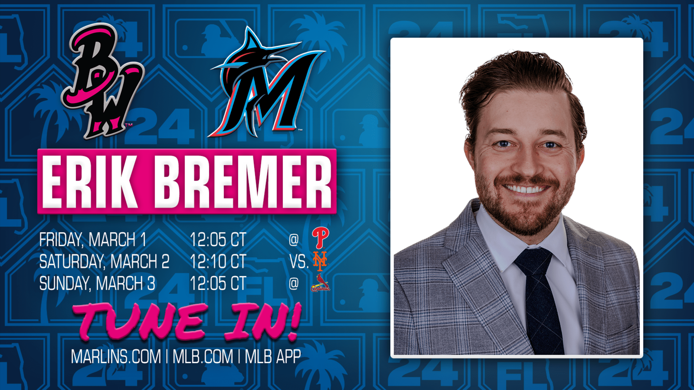 PENSACOLA, Fla. -- Pensacola Blue Wahoos broadcaster Erik Bremer will broadcast three Spring Training games on the Miami Marlins Radio Network as the Blue Wahoos and Marlins prepare for the 2024 season.