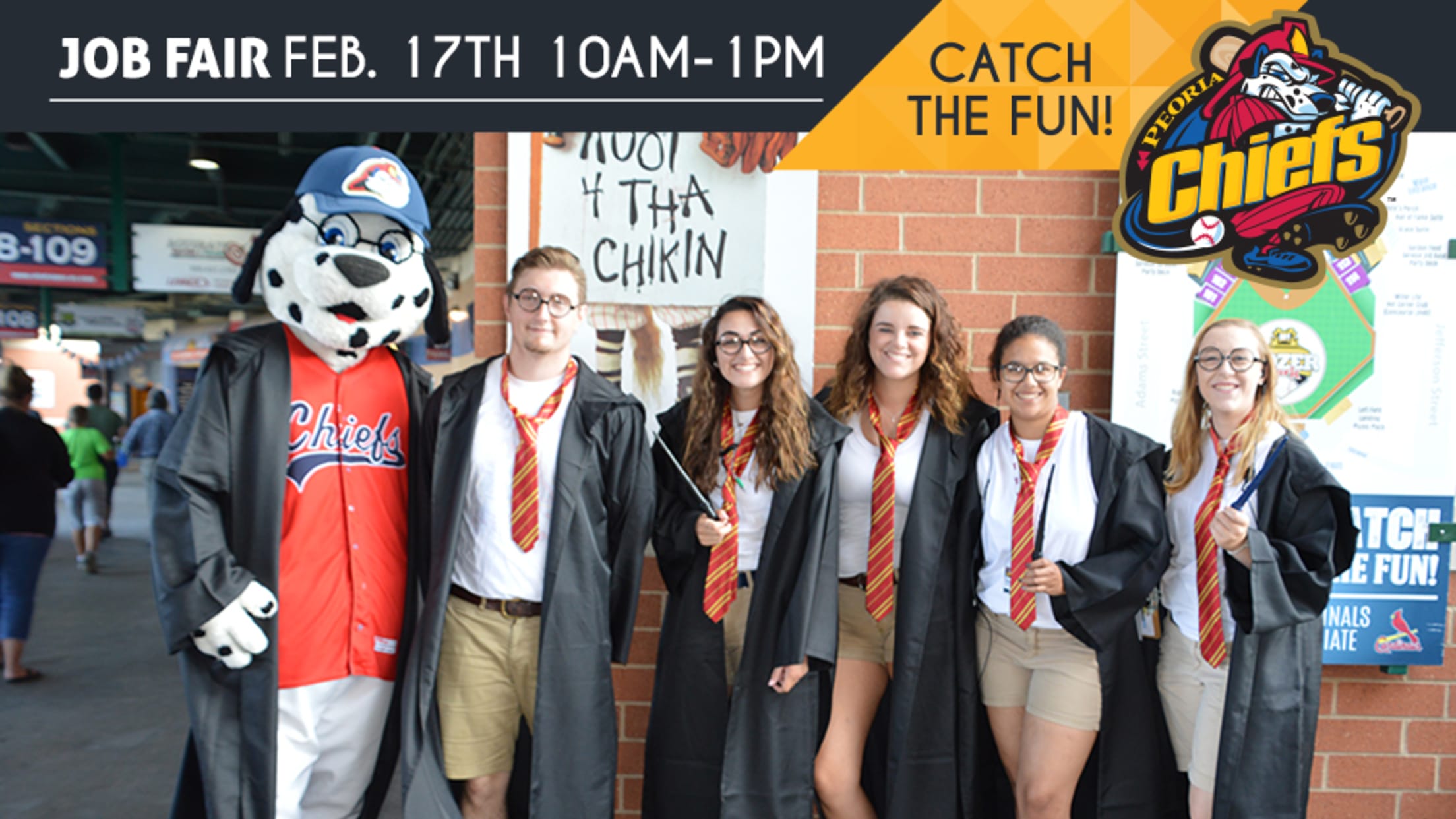 Want to work in an exciting and fun-filled atmosphere this summer? The Peoria Chiefs are hosting a job fair to fill a variety of positions for the 2018 season. The job fair will be on Saturday, February 17 from 10:00 a.m. to 1:00 p.m. at Dozer Park located at 730