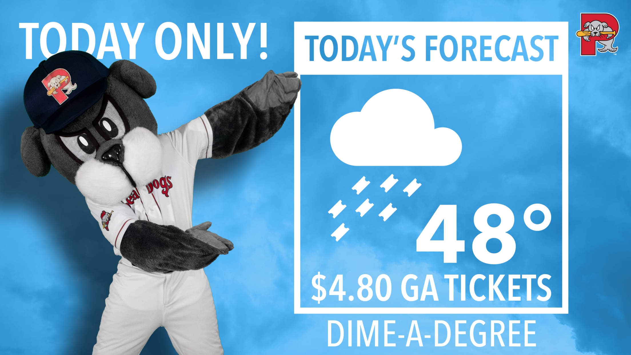 CLICK HERE TO PURCHASE TICKETS Portland, Maine- The mild temperatures today mean cool ticket prices for General Admission tickets. The Sea Dogs' annual Dime-A-Degree day will take place today (March 10th). The 9:00 AM temperature at Delta Dental Park at Hadlock Field in Portland, Maine, was 48 degrees, meaning that