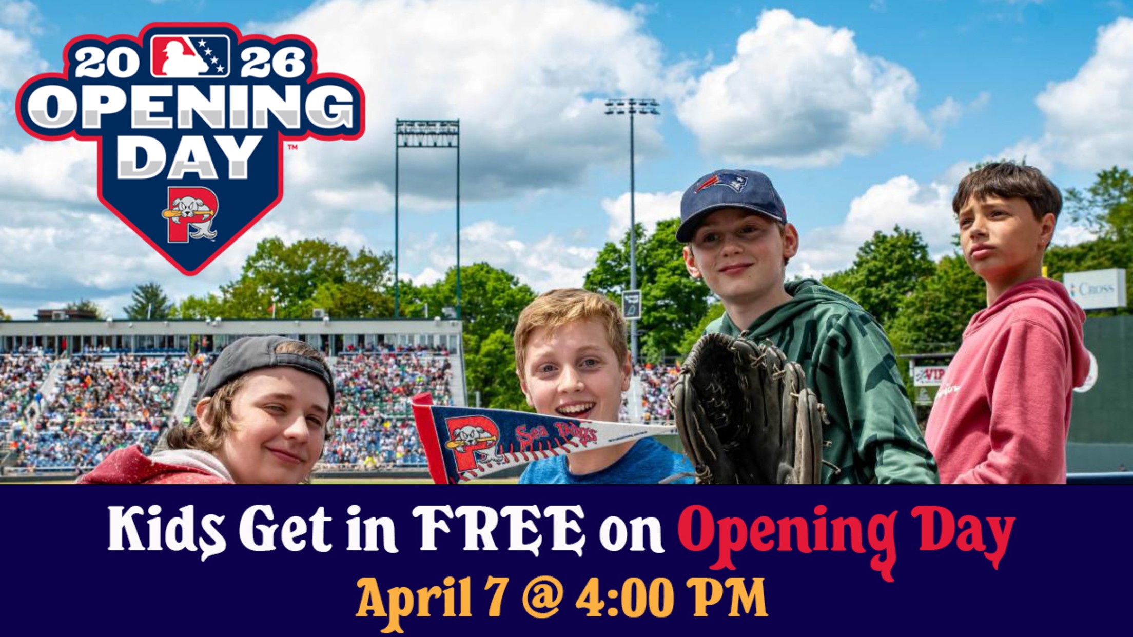 Portland, Maine- The Portland Sea Dogs have announced that kids can attend Opening Day for free when attending with a paying adult. The Sea Dogs' home opener is set for Tuesday, April 7th, at 4:00 PM against the New Hampshire Fisher Cats (Blue Jays) at Delta Dental Park at Hadlock Field.