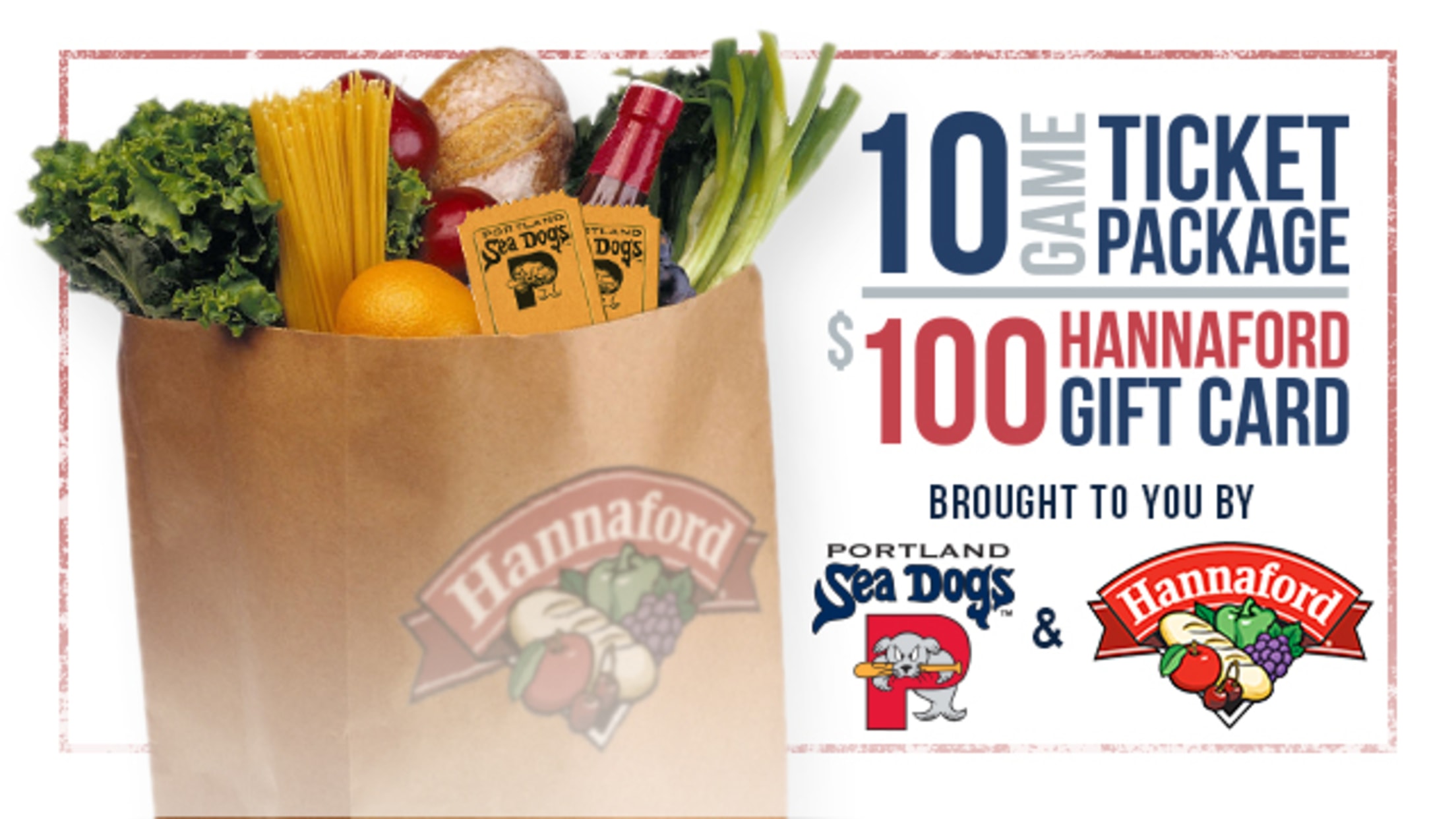 The ticket package includes four reserved seat tickets to ten of the most popular Sea Dogs games of the season and a FREE $100.00 gift card to Hannaford Supermarkets. The Sea Dogs will also include four complimentary tickets to Opening Day (April 16th).