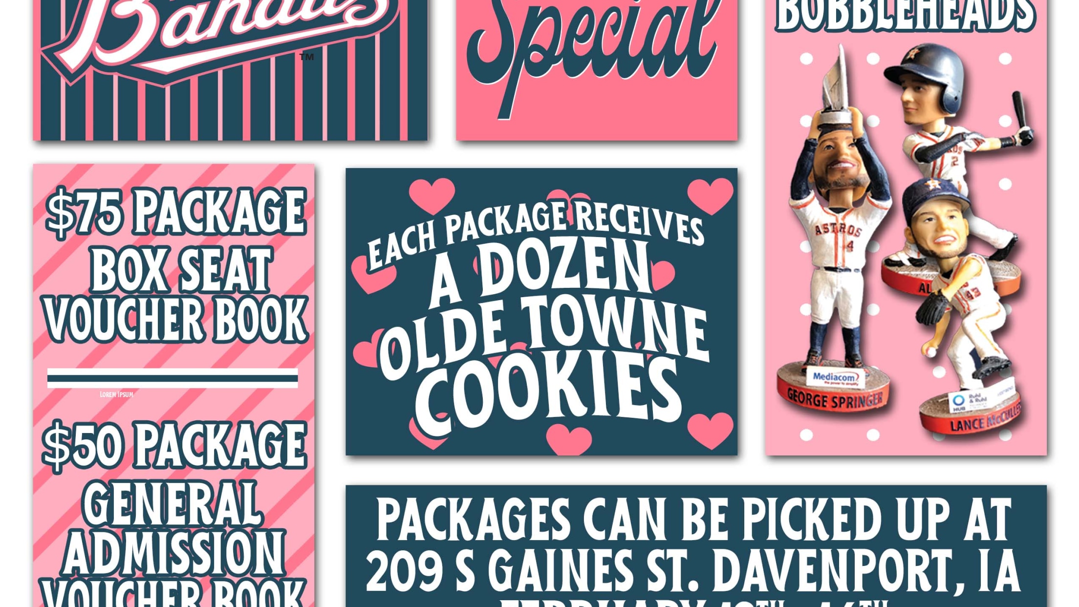 The Quad Cities River Bandits are selling special ticket packages for you to get your honey this Valentine's Day! There are two options for packages which include tickets, bobbleheads, and a dozen sugar cookies from Olde Towne Bakery!