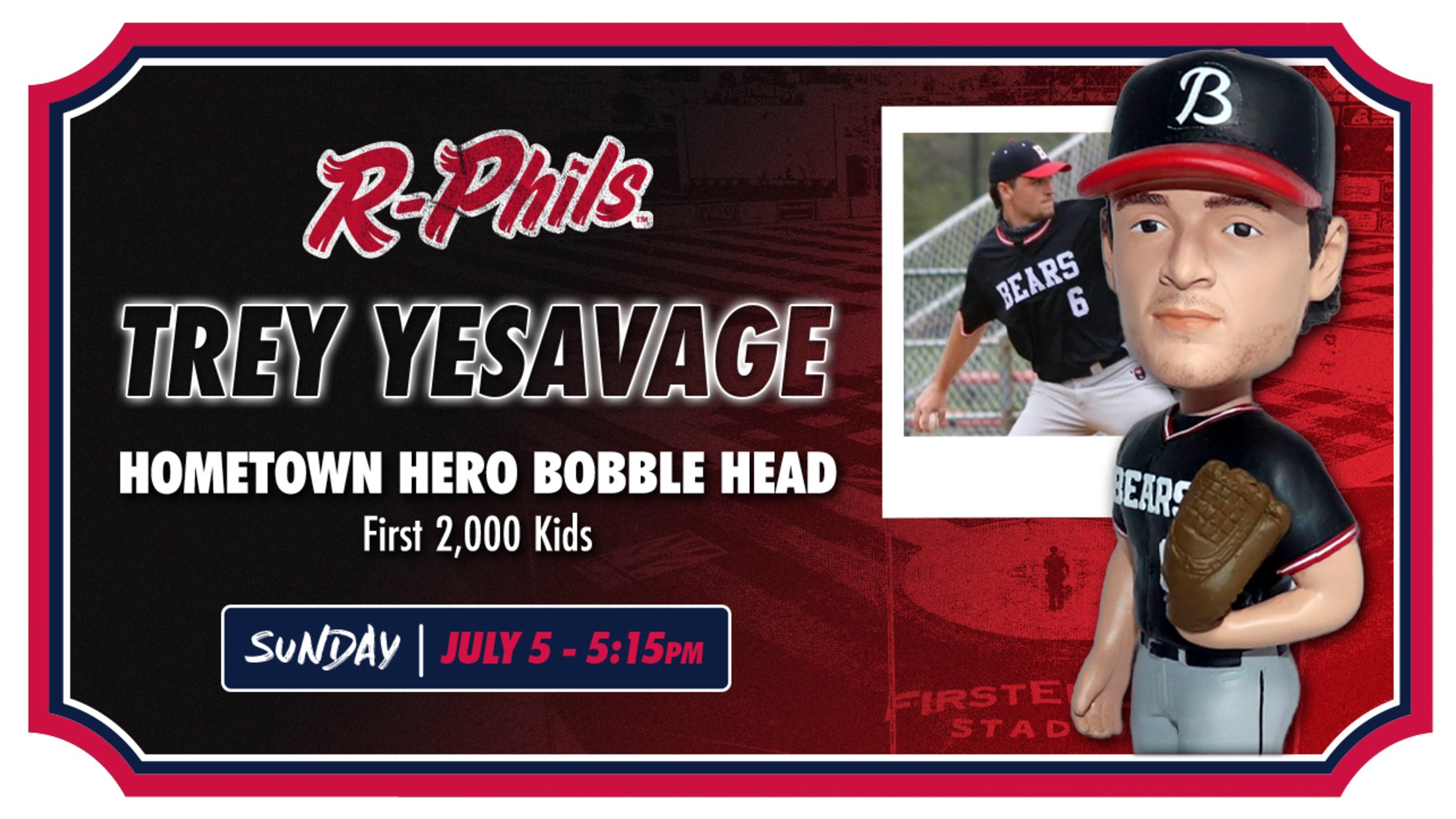 The Fightin Phils will take on the New Hampshire Fisher Cats at 5:15 p.m., the Double-A affiliate of the Toronto Blue Jays—Yesavage’s current team. Gates open at 4 p.m., and fans are encouraged to arrive early to secure their Yesavage bobblehead. The reigning American League Champion will be featured in a Boyertown Bears uniform on the collectible.