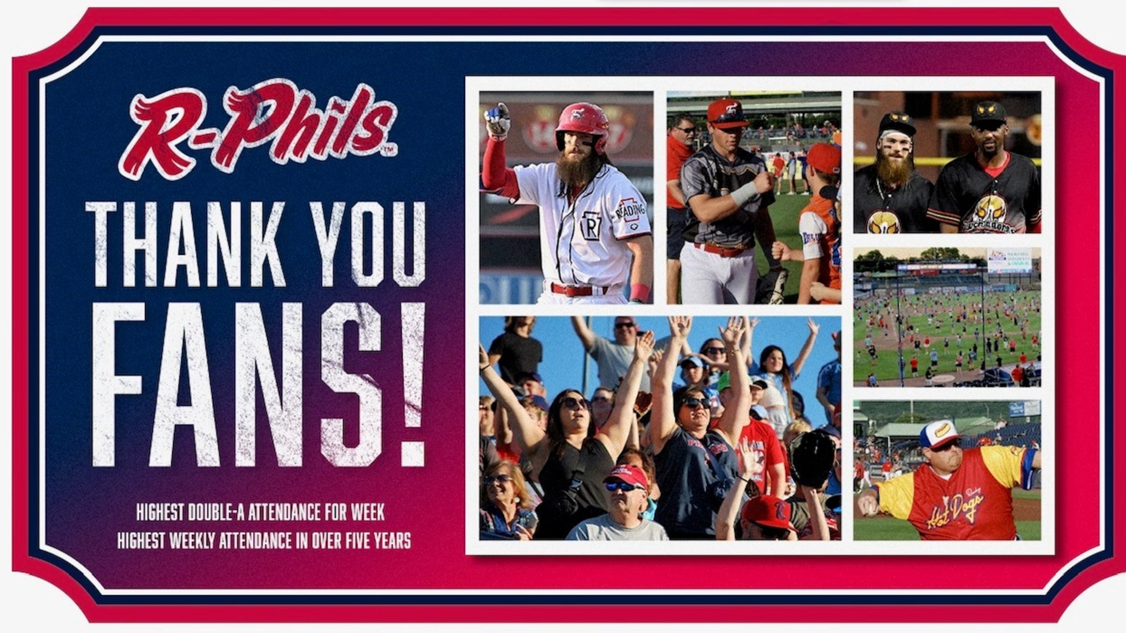 (Reading, PA) - The Reading Fightin Phils, Double-A affiliate of the Philadelphia Phillies, are excited to share they drew the organization's largest weekly crowd in over five seasons.
