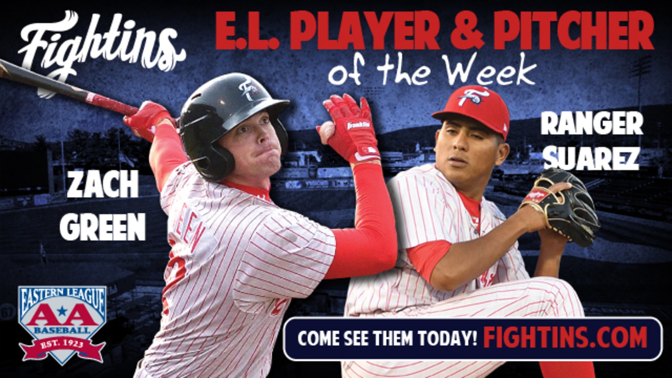 (Reading, PA) - The Eastern League has announced that Reading Fightin Phils infielder Zach Green and pitcher Ranger Suárez have been named Eastern League Player and Pitcher of the Week for the period of June 18th through June 24th. Green is receiving the award for the first time. Suarez was