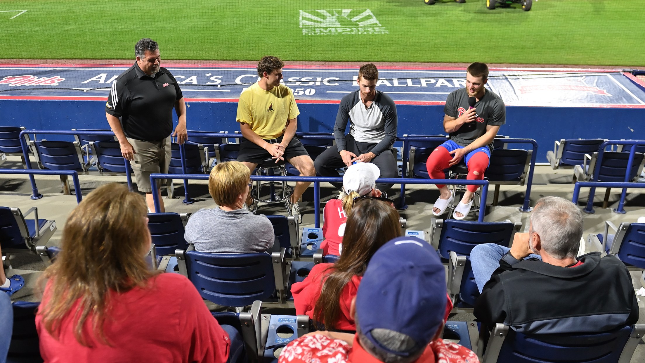 A pre-game faith discussion will take place, where fans will have the opportunity to listen to players speak about its impact in their lives and careers. Fans are encouraged to participate in the question-and-answer session that will last for about 20 minutes. Typically two to four R-Phils athletes take part in the discussion.