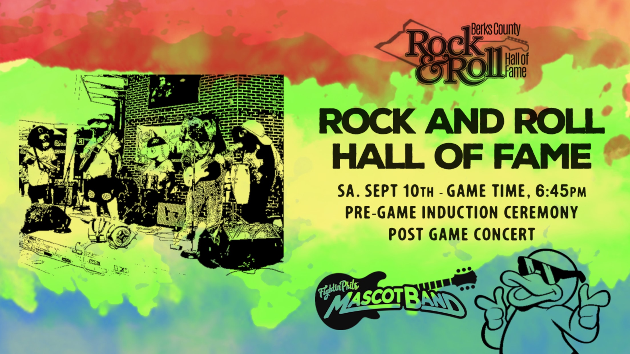 The Reading Fightin Phils are pleased to be the host of the Berks County Rock and Roll Hall of Fame Induction Ceremony on Saturday, September 10th. It is extra special this year as our own Mascot Band will be inducted into the Hall of Fame after 21 years of entertaining