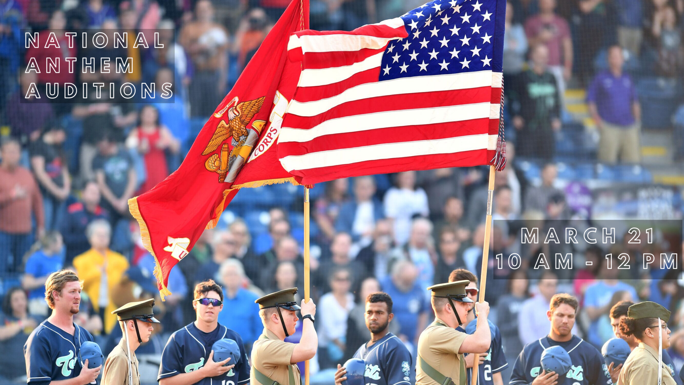 Bands, choirs, groups, and individuals should report to the seating bowl upon arrival to sign up. Auditions will take place on the field behind home plate. Each rendition of the Star-Spangled Banner is to last no longer than one minute and thirty seconds.
