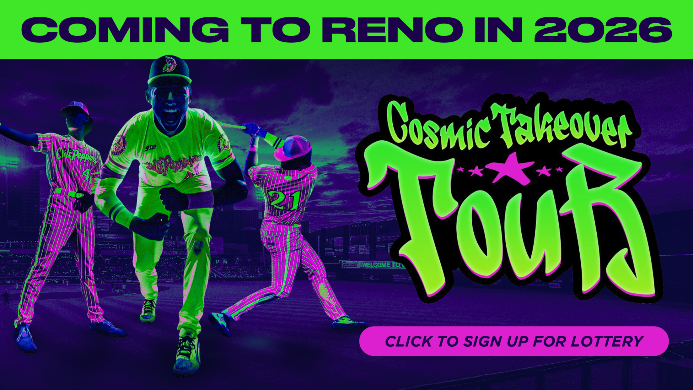 RENO, Nev. – After the completely sold out 2025 Tour, Cosmic Baseball is excited to start announcing the locations the organization will be going in the 2026 season! Greater Nevada Field is one of the spots joining the Cosmic Takeover Tour next year, and fans can enter the ticket lottery