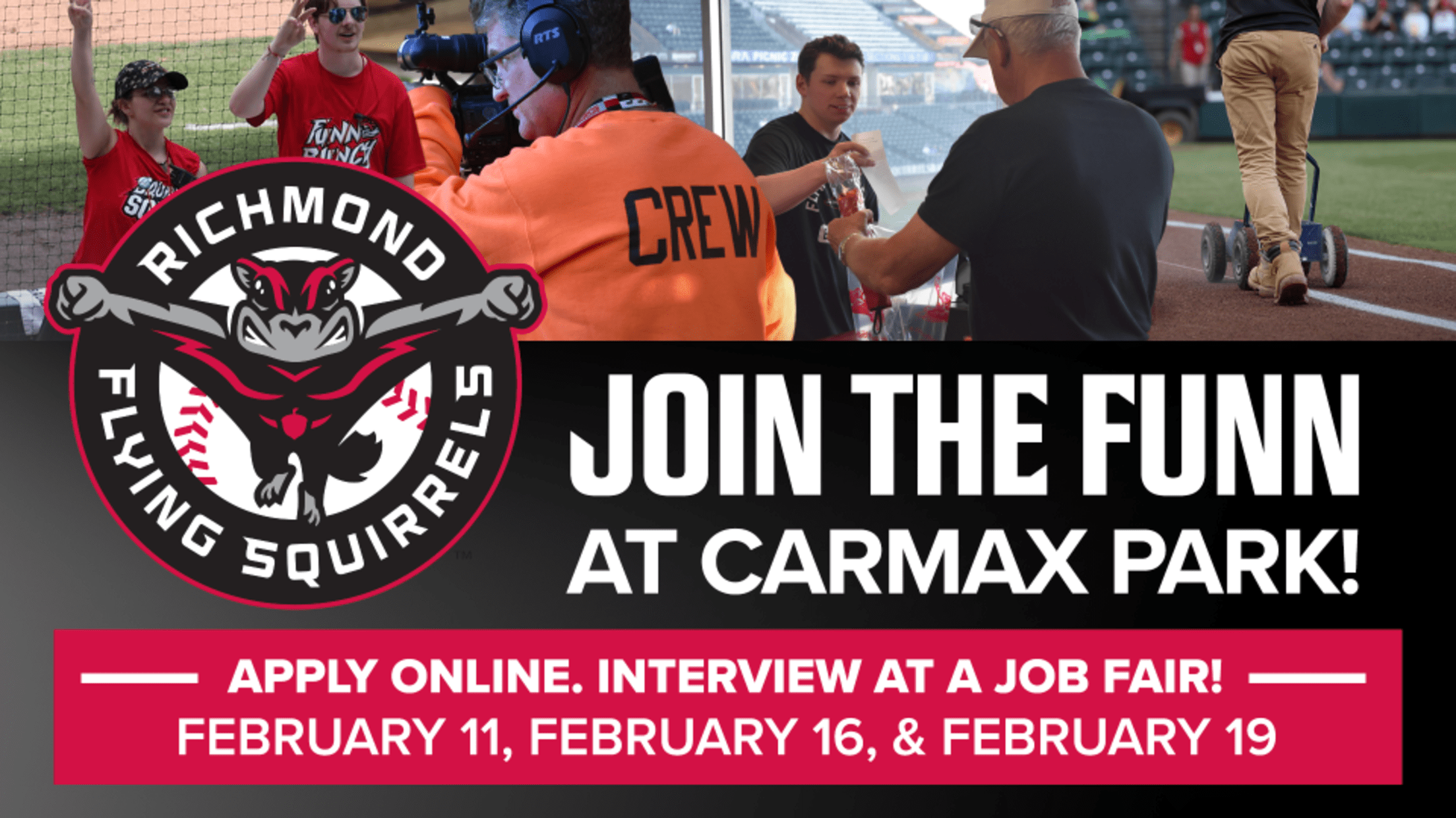 RICHMOND, Va. – The Richmond Flying Squirrels in collaboration with J&G Workforce Development are hosting a series of job fairs for part-time and seasonal positions ahead of their inaugural season at CarMax Park.