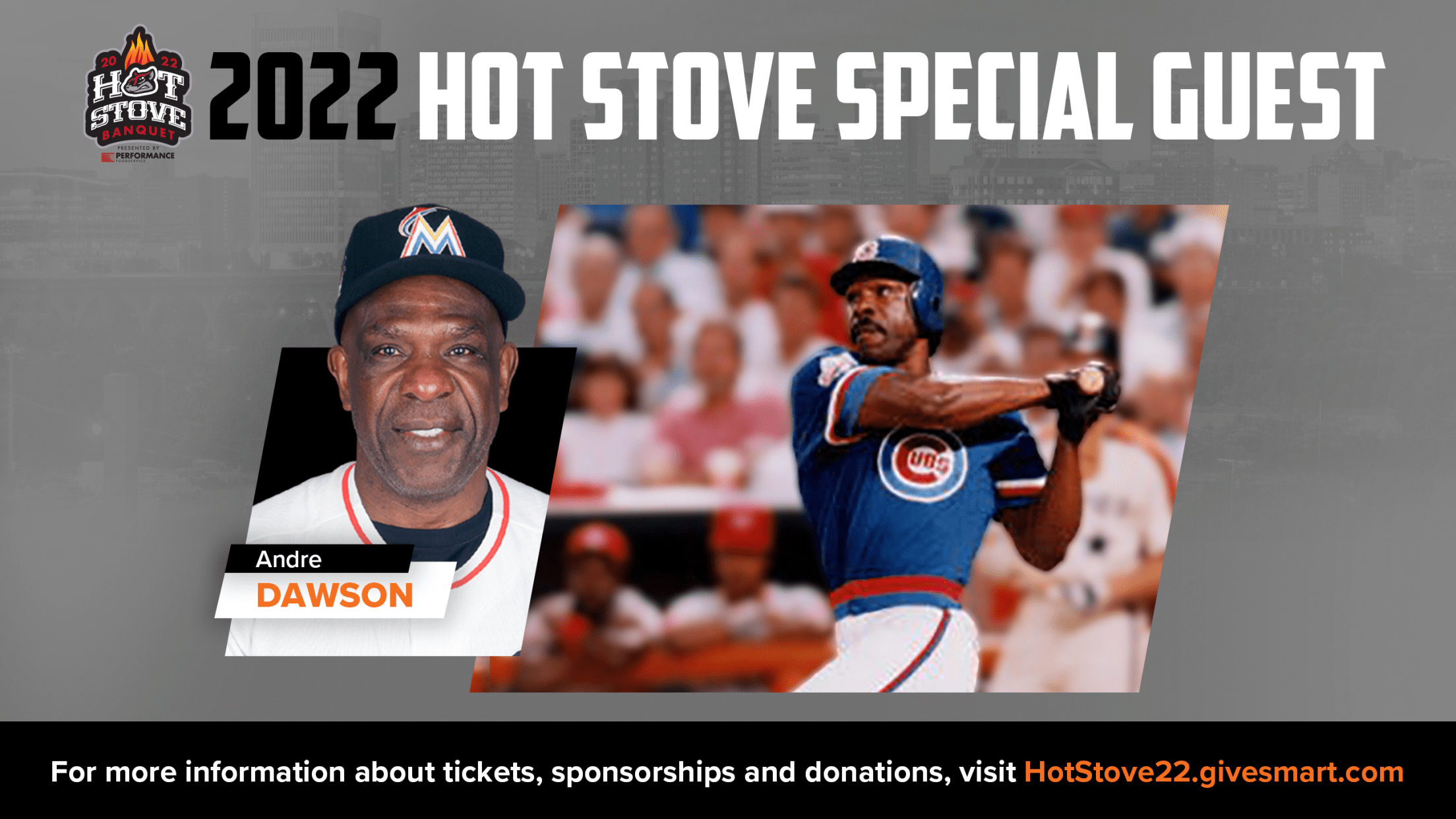 RICHMOND, Va. – Hall of Fame outfielder Andre Dawson will headline the Richmond Flying Squirrels’ 2022 Charity Hot Stove presented by Performance Foodservice on Thursday, November 10 at the Altria Theater, the team announced on Thursday.