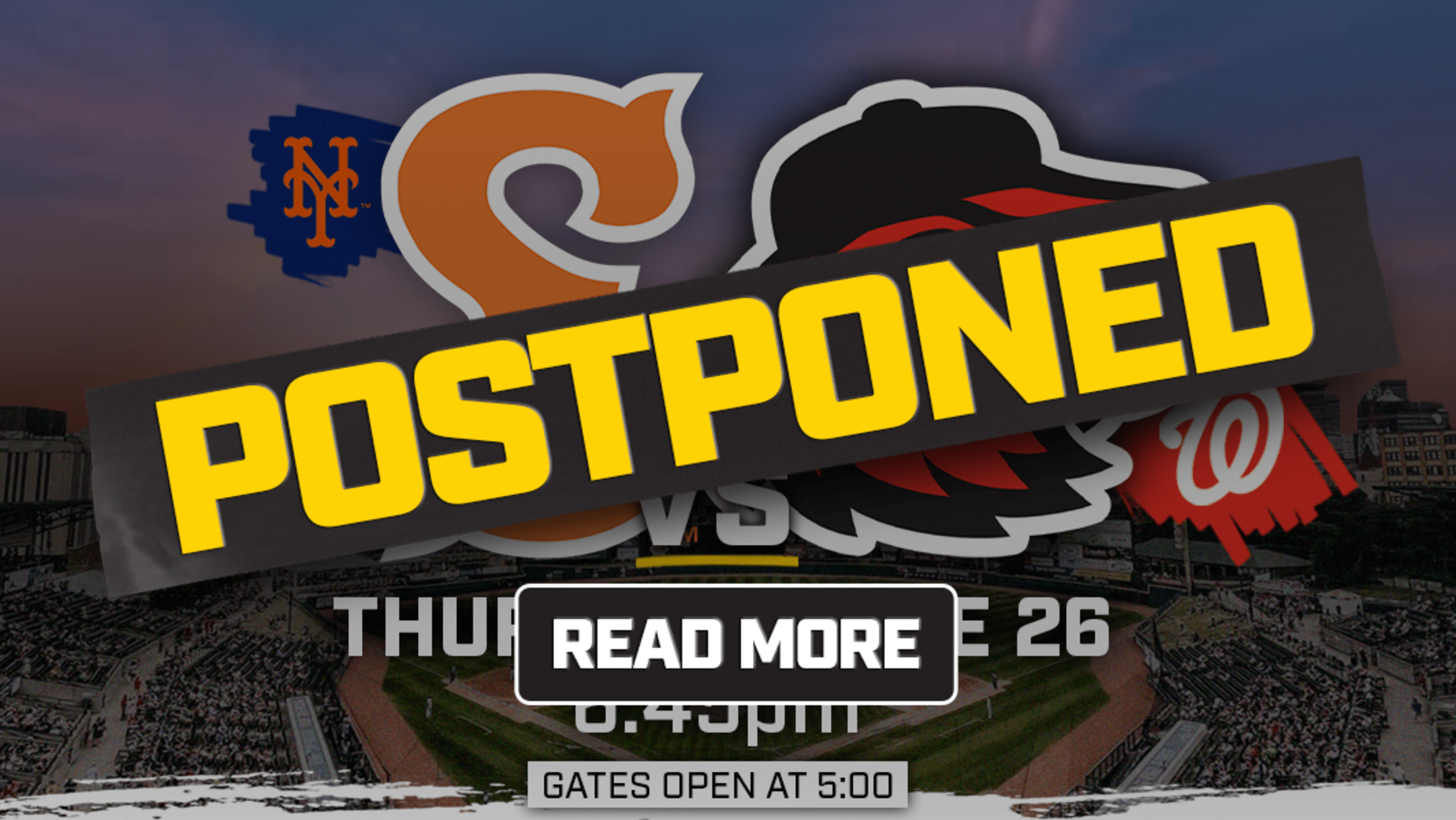 Tonight’s PLATES KOOZIE giveaway presented by Genesee Brewing, and the DUEL OF THE DISHES will both be rescheduled for Sunday, June 29, with first pitch set for 1:05 pm. Bruce the Bat Dog’s appearance to fetch bats tonight will be rescheduled for a later date.