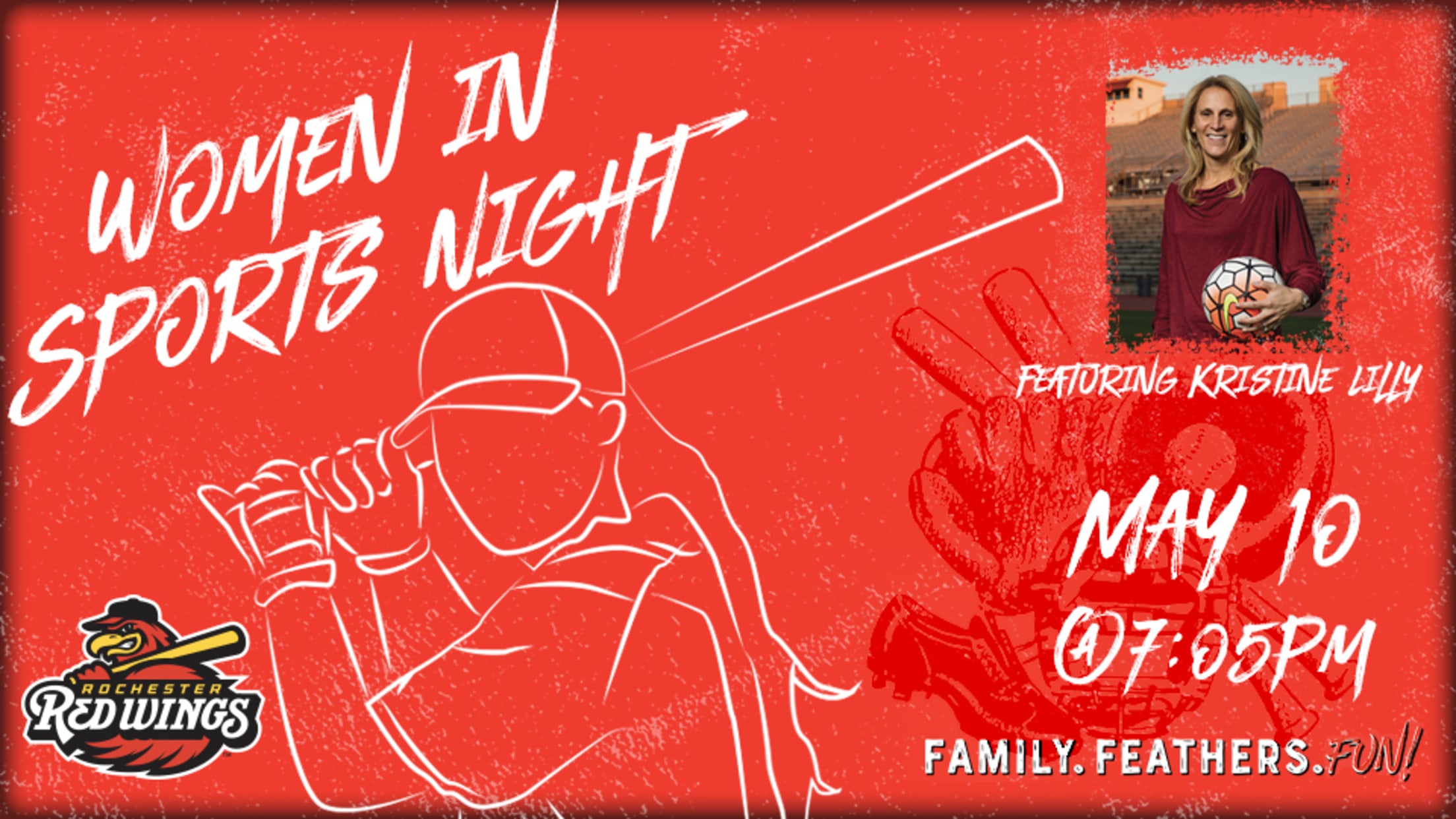The Rochester Red Wings will host Women in Sports Night on Friday, May 10 at Frontier Field! The night will be headlined by former Team USA soccer star Kristine Lilly.