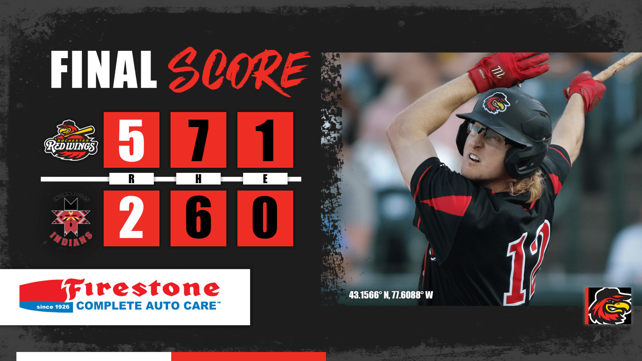 Rochester storms back in the ninth inning to win the series finale, 4-2. The Wings had just two hits going into the bottom half of the ninth before completing their second ninth-inning comeback of the season. Indianapolis would open the scoring in the bottom half of the first, when SS
