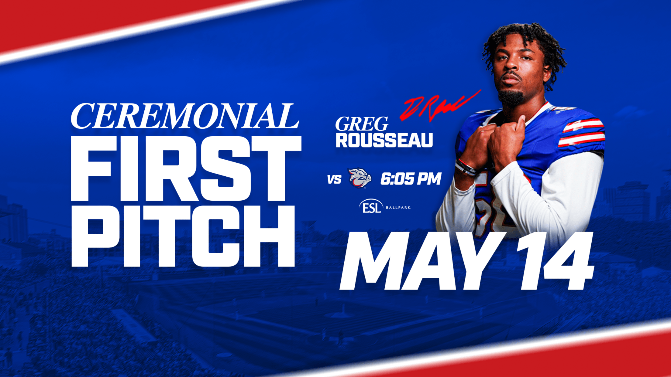 ROCHESTER, NY — The Rochester Red Wings are excited to announce that Buffalo Bills defensive end GREG ROUSSEAU will throw out the ceremonial first pitch at ESL Ballpark on Wednesday, May 14, when the Red Wings take on the Lehigh Valley IronPigs.