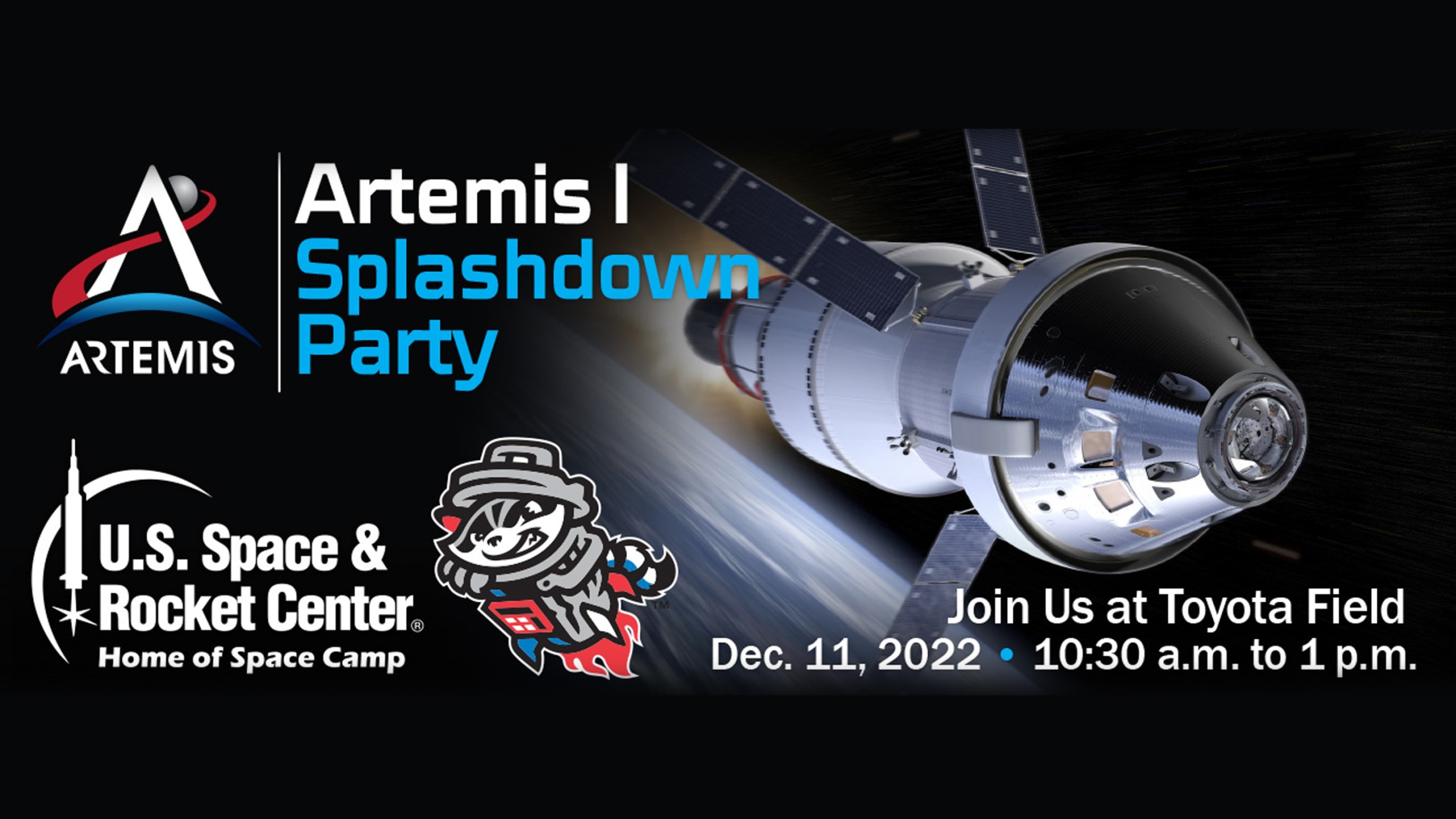 The Rocket City Trash Pandas and the U.S. Space & Rocket Center will be hosting a free Artemis I Splashdown Party at Toyota Field on Sunday, December 11 from 10:30 a.m. until 1 p.m. The Orion spacecraft is set to splashdown in the Pacific Ocean Sunday morning at 11:40 a.m.,