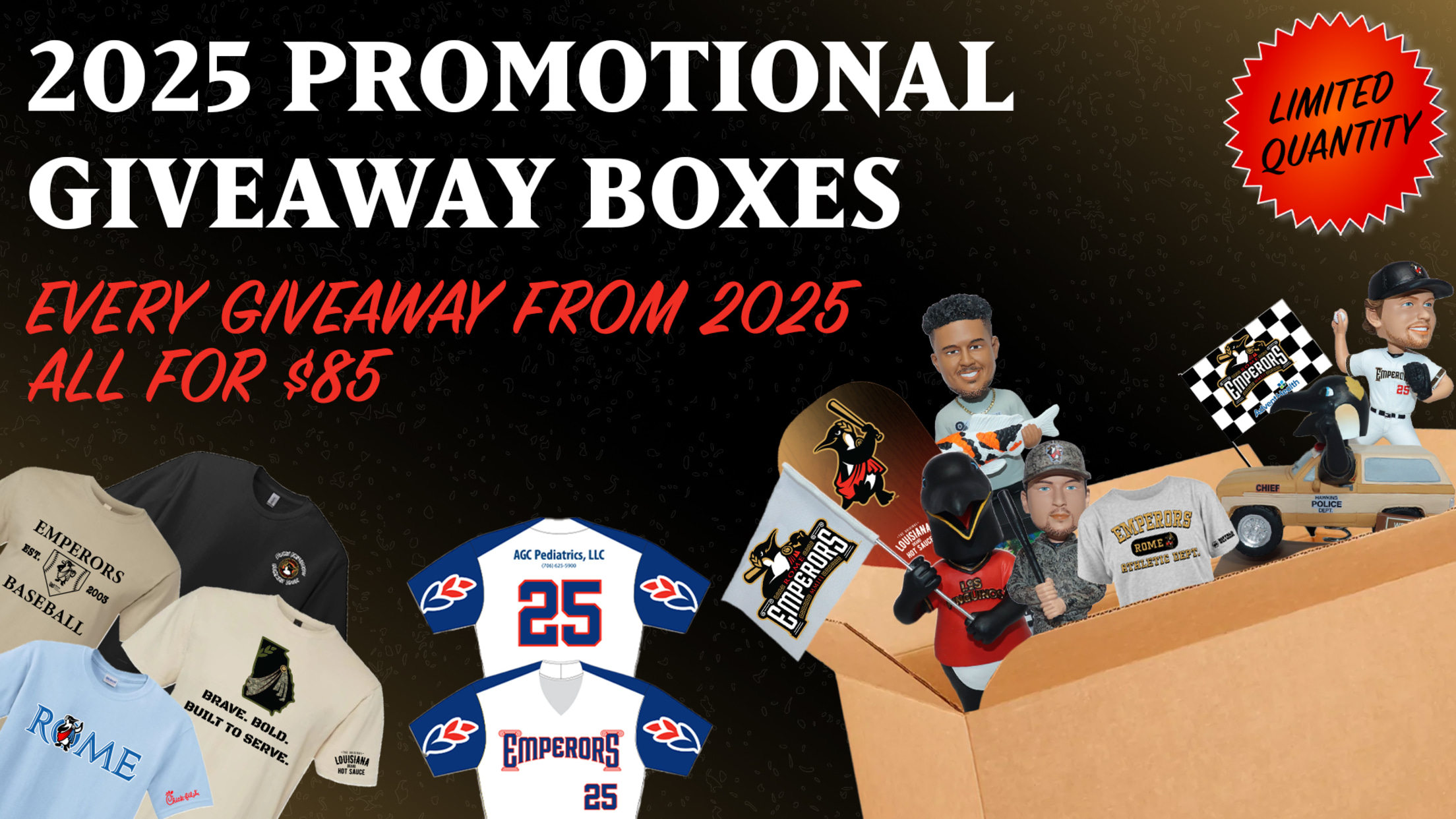 Didn’t get a chance to grab our promotional items from the 2025 season? Now’s your chance! You can take home all 19 giveaways from this past season in one complete bundle. The bundle includes: - Ozzie Albies Fish Tank Bobblehead - Chief Julius Stranger Things Bobblehead - Spencer Schwellenbach Bobblehead