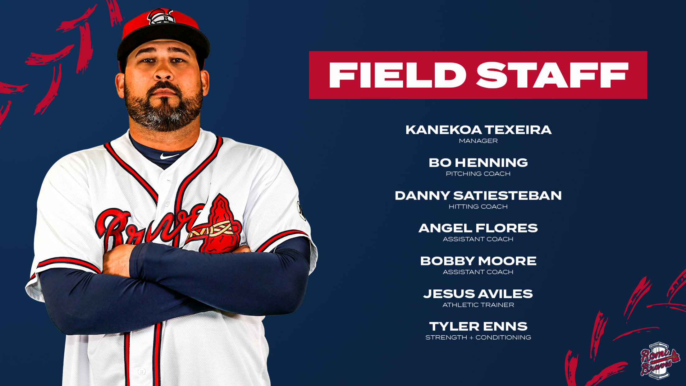 ROME, GA – The Atlanta Braves released their 2021 field staffs for all four of their minor league clubs on Tuesday, and Kanekoa Texeira has been named the Rome Braves manager.