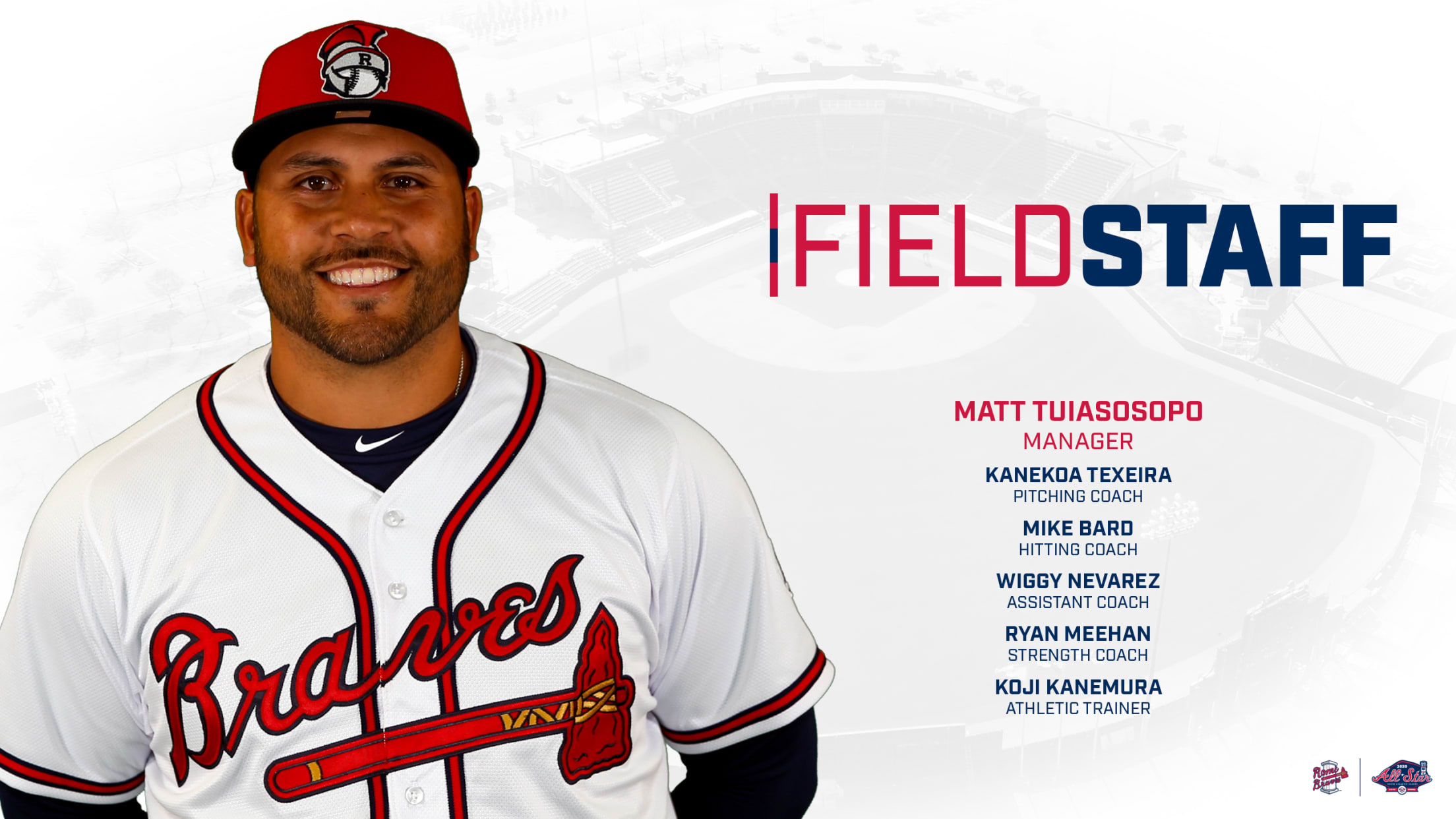 ROME, GA - In conjunction with the Atlanta Braves, the Rome Braves announced its 2020 field staff earlier today. Manager Matt Tuiasosopo returns to the Single-A Braves for his second season leading the Rome club along with pitching coach Kanekoa Texeira , coach Wigberto "Wiggy" Nevarez and strength coach Ryan Meehan. They'll be joined by a new hitting coach in Mike Bard and new athletic trainer Koji Kanemura.