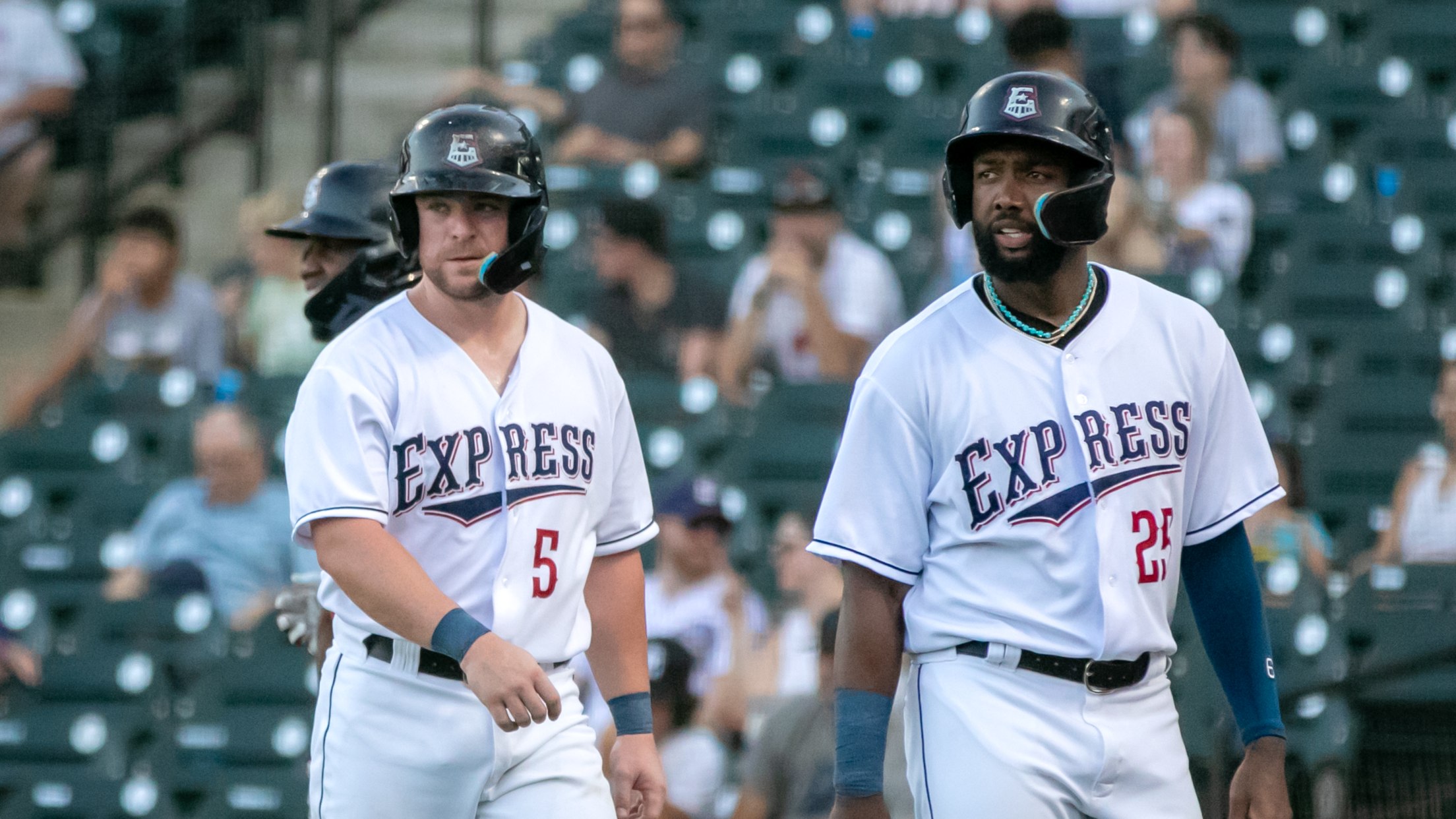 - The Express tied the game in the sixth with an RBI single by DH Blaine Crim to level the game at five apiece.