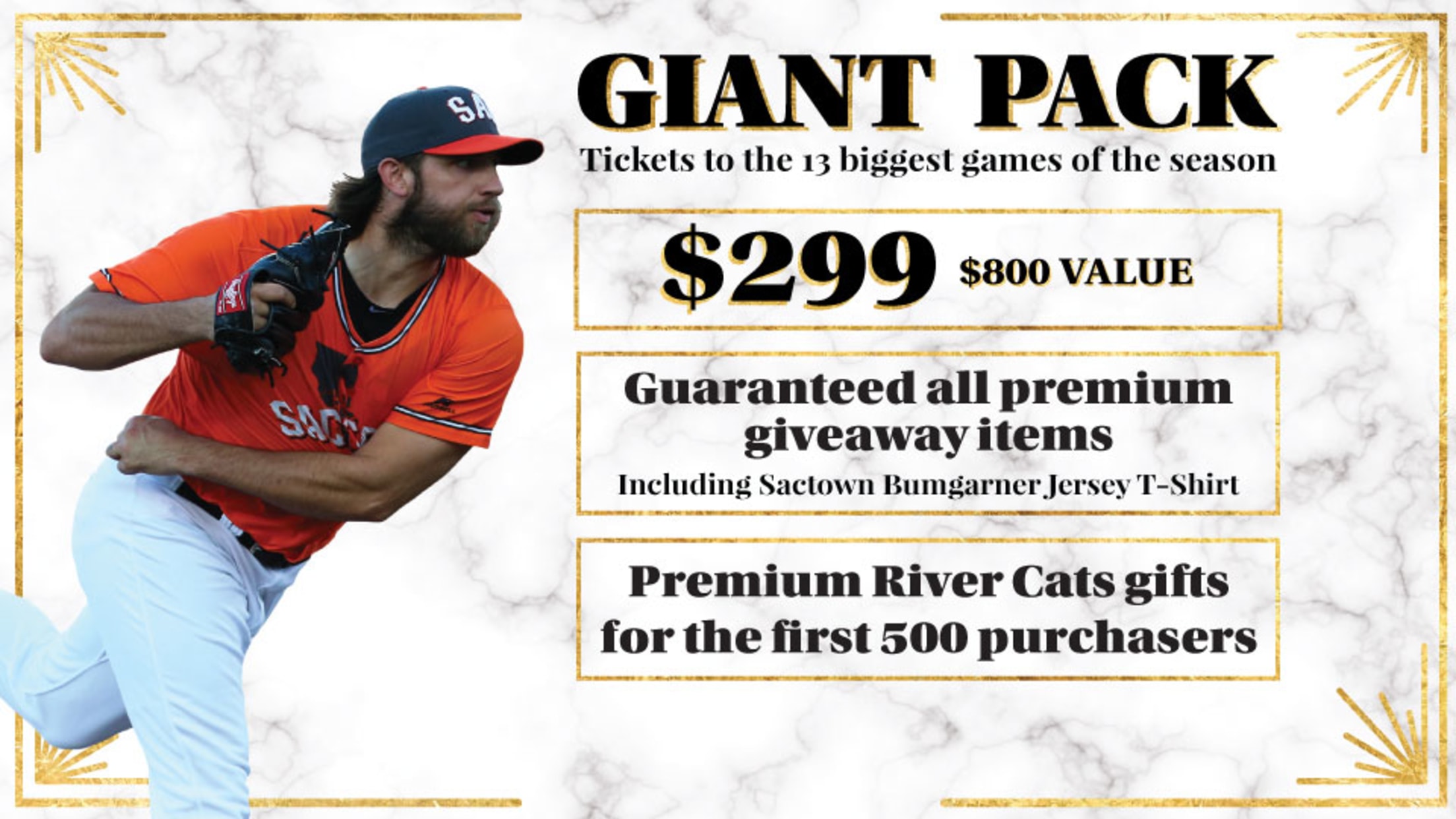Fans who purchase the package are also guaranteed premium giveaway items for the 2018 season, including a limited edition Madison Bumgarner Sactown jersey t-shirt. The first 500 fans who purchase a 2018 Giant Pack will also have the opportunity to choose from assorted River Cats gifts, perfect for the holiday season. Gifts must be selected at Raley Field.