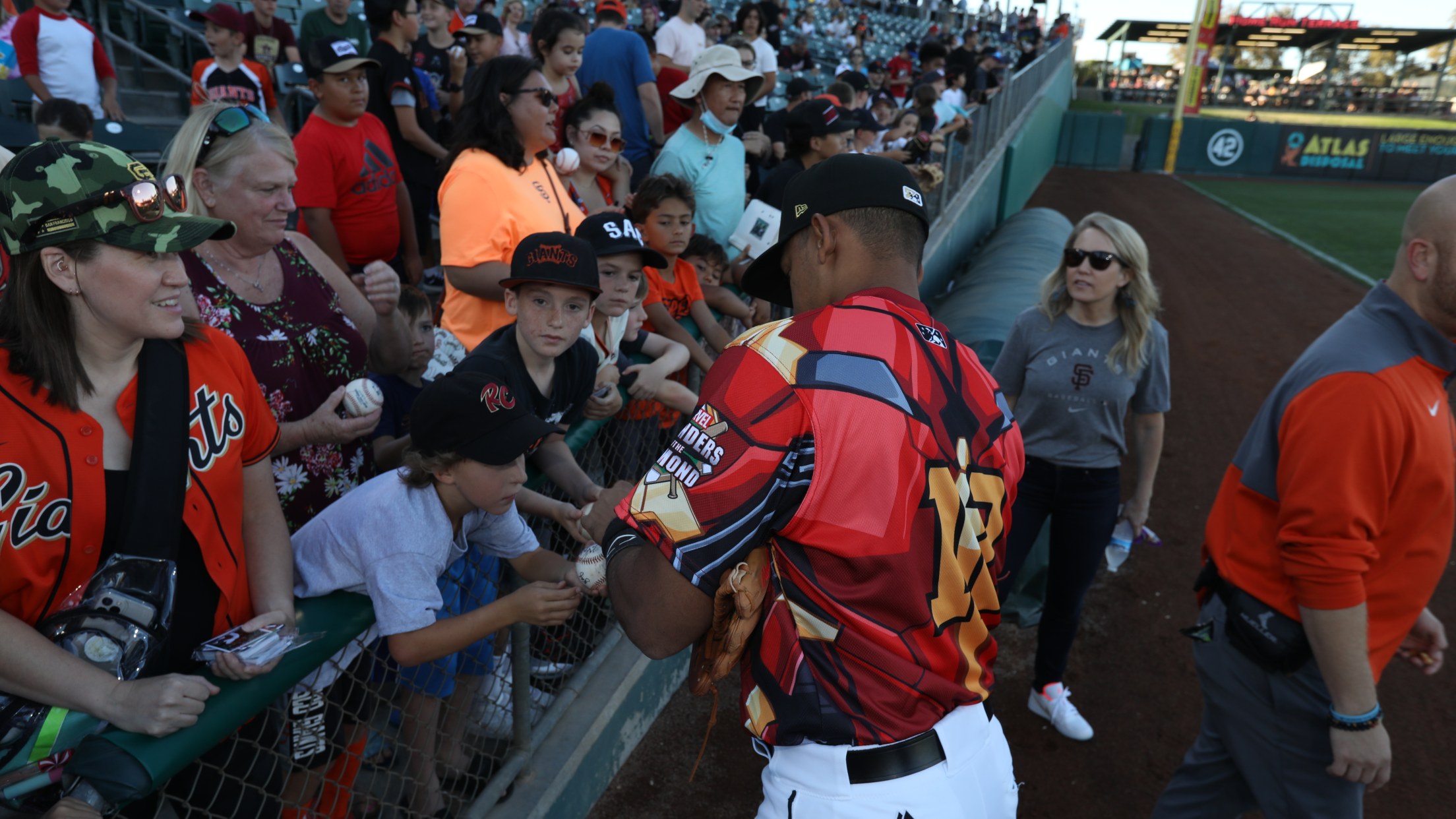 Sacramento infielder Dixon Machado signs autographs prior to the River Cats' Marvel's Defenders of the Diamond Night (8/27/22). (Ralph Thompson Photo)