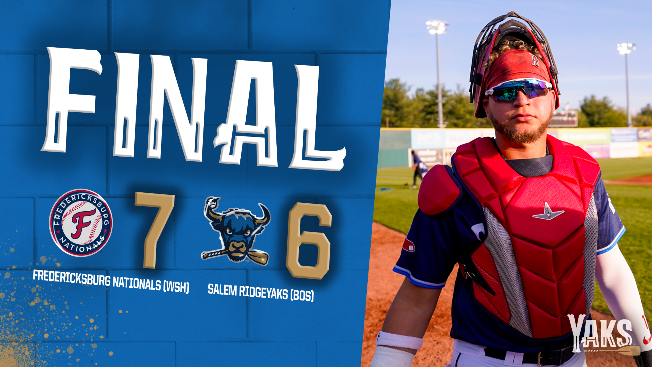 SALEM, Va. – The Salem RidgeYaks (9-8) erased a six-run deficit and forced extra innings but ultimately fell 7-6 to the Fredericksburg Nationals (11-6) on Wednesday morning at Carilion Clinic Field at Salem Memorial Ballpark.