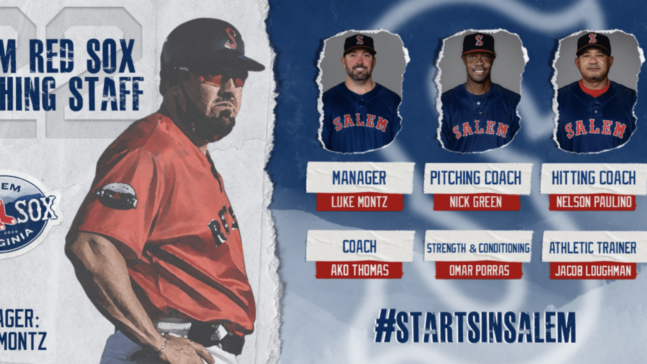 Luke Montz returns as Salem’s manager after a successful 2021 campaign. Montz and the Red Sox ended the previous season