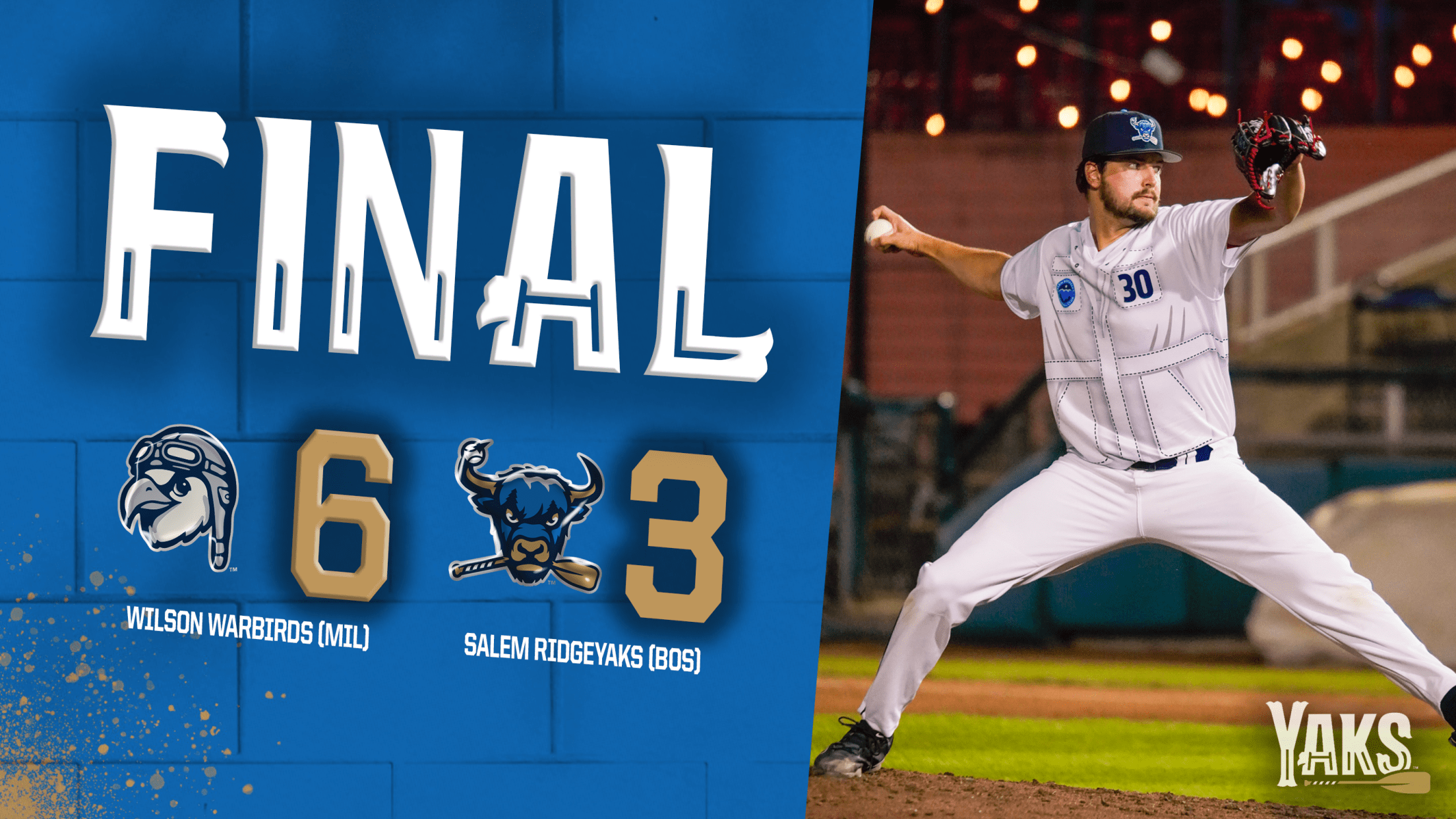 SALEM, Va. – Despite Kleyver Salazer’s solo home run and 2-for-3 night, the Salem RidgeYaks (6-2) saw their five-game winning streak come to a close in a 6-3 loss to the Wilson Warbirds (3-5) on Saturday evening at Carilion Clinic Field at Salem Memorial Ballpark.
