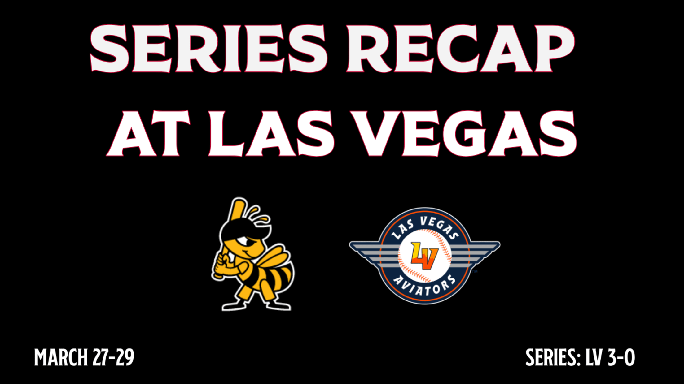 Salt Lake at Las Vegas Series Recap Road Series #1 Mar. 27-29 Las Vegas 3-0 Game 1 - Las Vegas Aviators 12, Salt Lake Bees 1 WP: Kade Morris (1 - 0) LP: Victor Mederos (0 - 1) SV: None Salt Lake fell on Opening Night in Las Vegas after