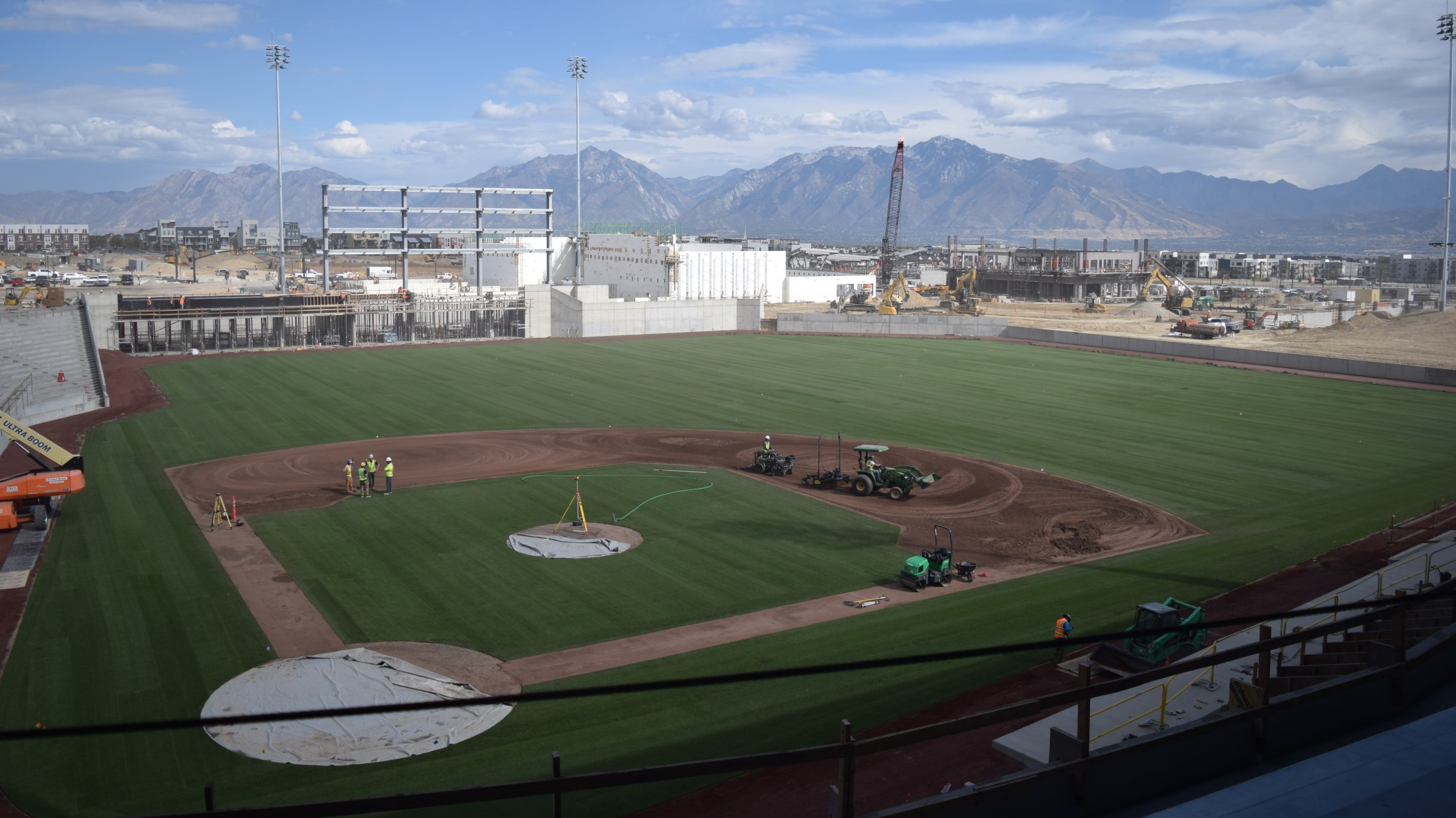 The Bees celebrated the installation of the grass playing surface at Daybreak Field at America First Square. The field install began on Monday and the final pieces were ceremoniously rolled out on Wednesday afternoon.
