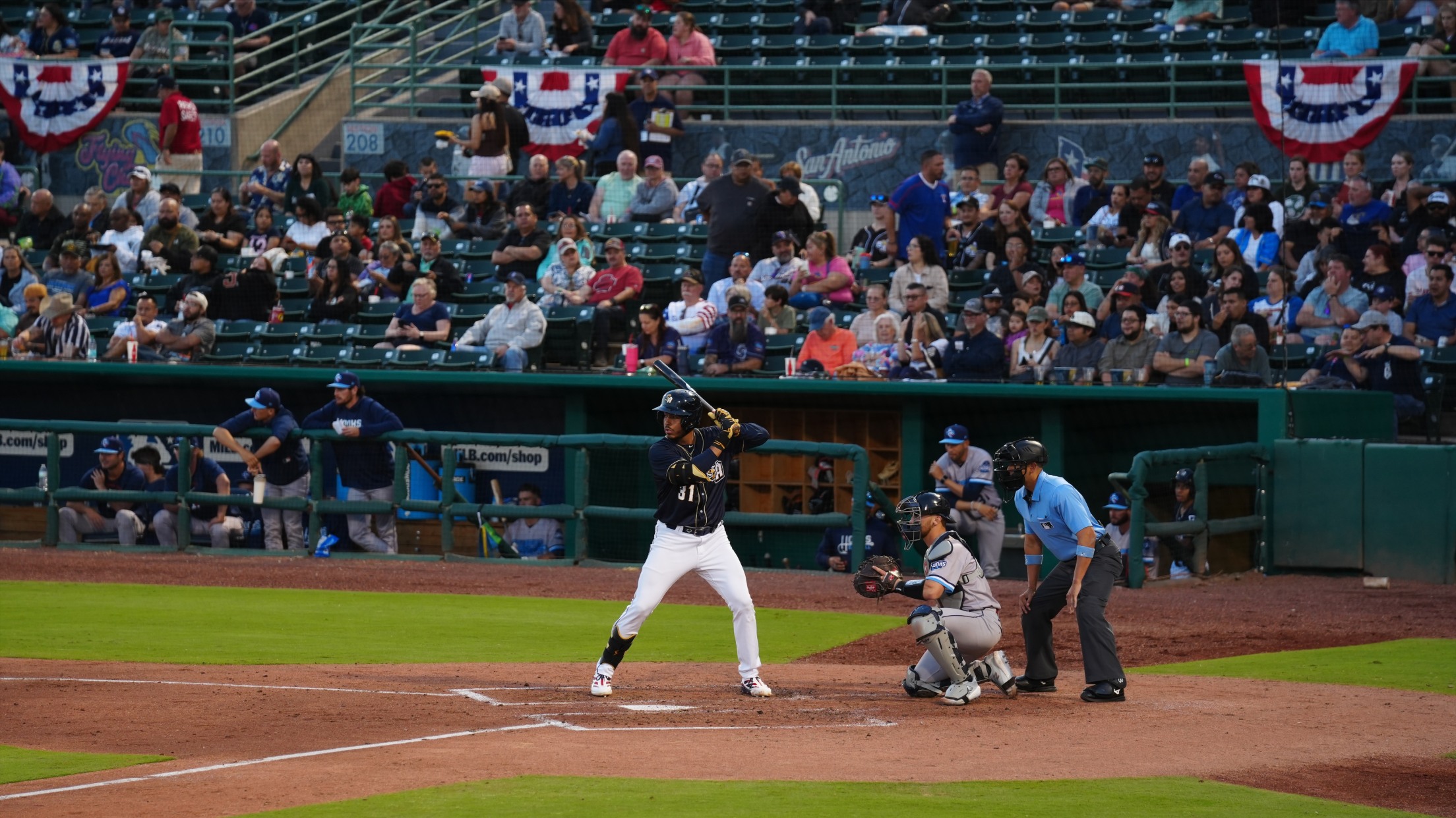 SAN ANTONIO (April 7, 2026) — The fireworks started early in the San Antonio Missions’ home opener against the Corpus Christi Hooks as left fielder Joseph Sullivan hammered Missions starter Luis Gutierrez's second pitch of the contest over the right field wall of Nelson W. Wolff Municipal Stadium. The blast