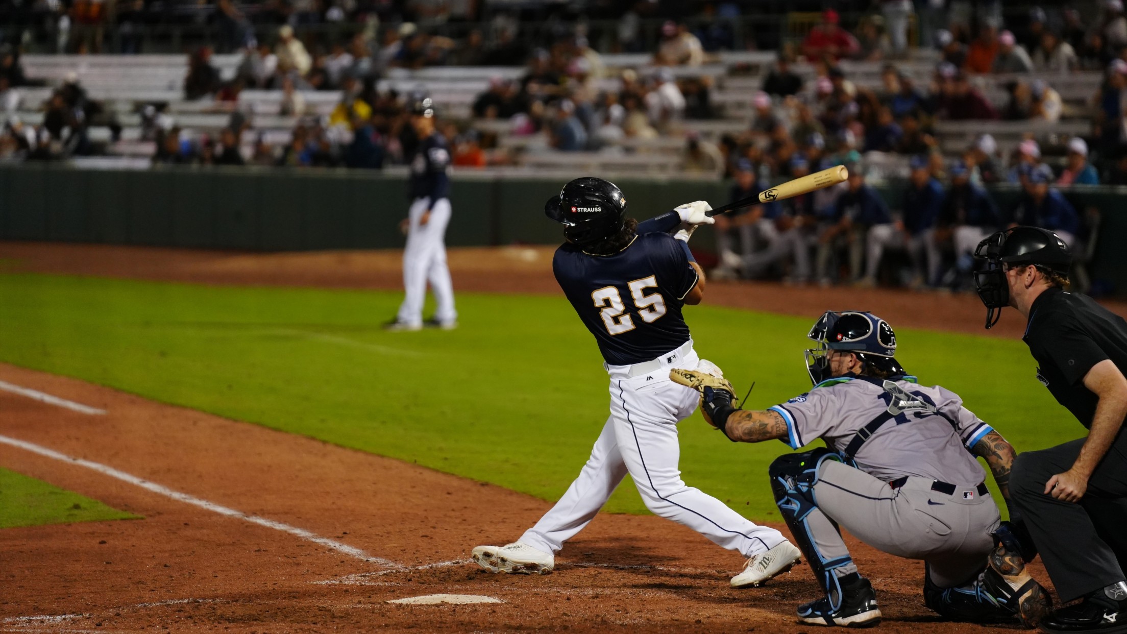 Roberts was placed on second base to begin the tenth, and he stole another base to set up Karpathios for the game-winning swing. Karpathios lined one to left, and by the time it fell, 7,551 fans erupted for the Missions’ first home victory of the season.
