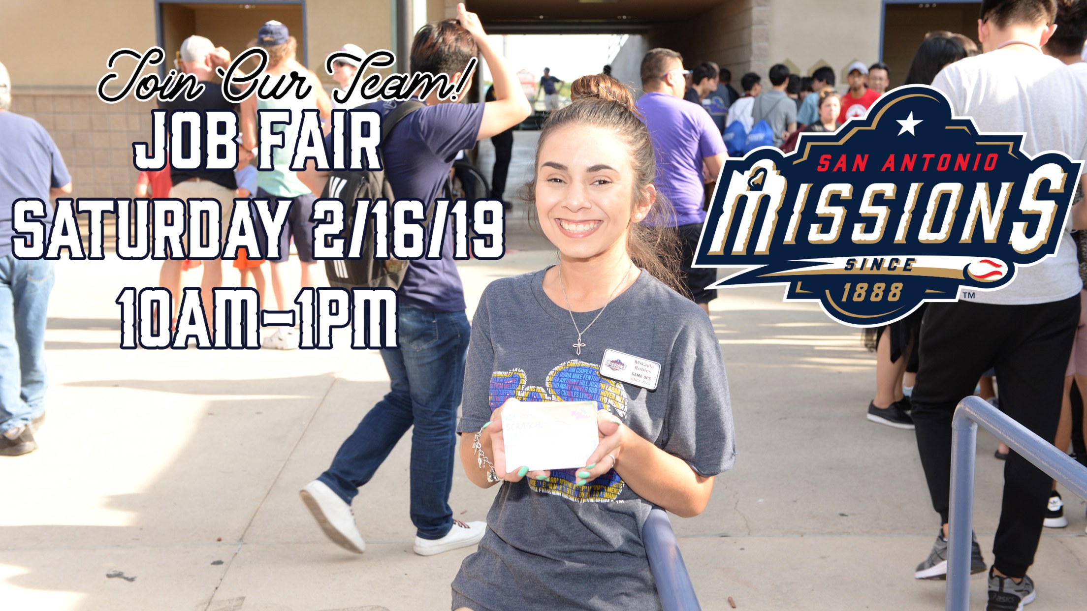 San Antonio - The San Antonio Missions and their catering service, Diamond Creations, will host a job fair on Saturday, February 16 from 10 a.m. to 1 p.m. at Nelson Wolff Stadium.The Missions are looking to fill numerous 2019 seasonal positions in the following categories: bat boys (ages 16-20 only),