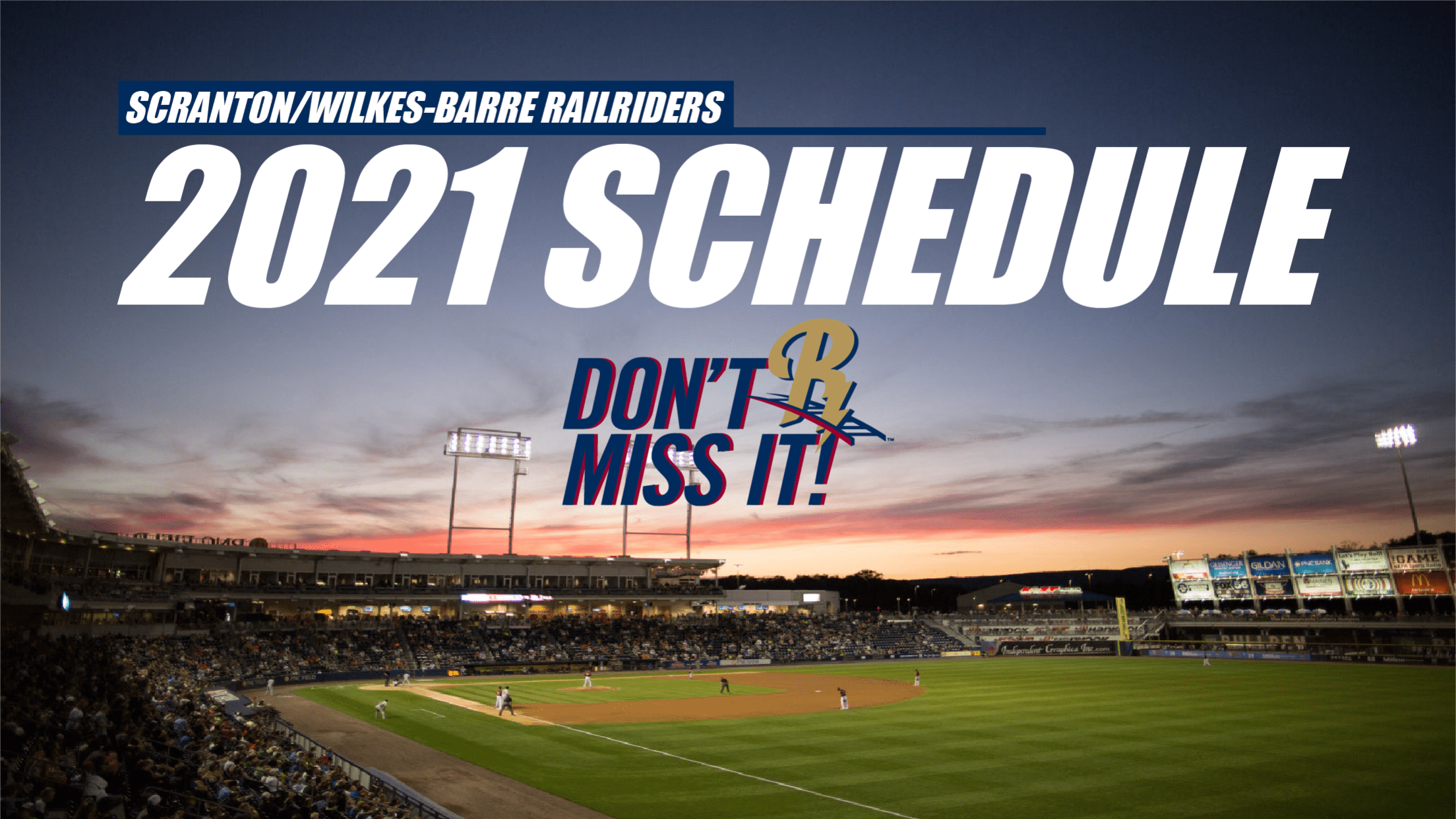 MOOSIC, PA (March 3, 2021) – The Scranton/Wilkes-Barre RailRiders, Triple-A affiliate of the New York Yankees, are pleased to announce the schedule for the upcoming 2021 season. The RailRiders will open their season on May 4 at Syracuse and play their home opener one week later on May 11 against the Lehigh Valley IronPigs.