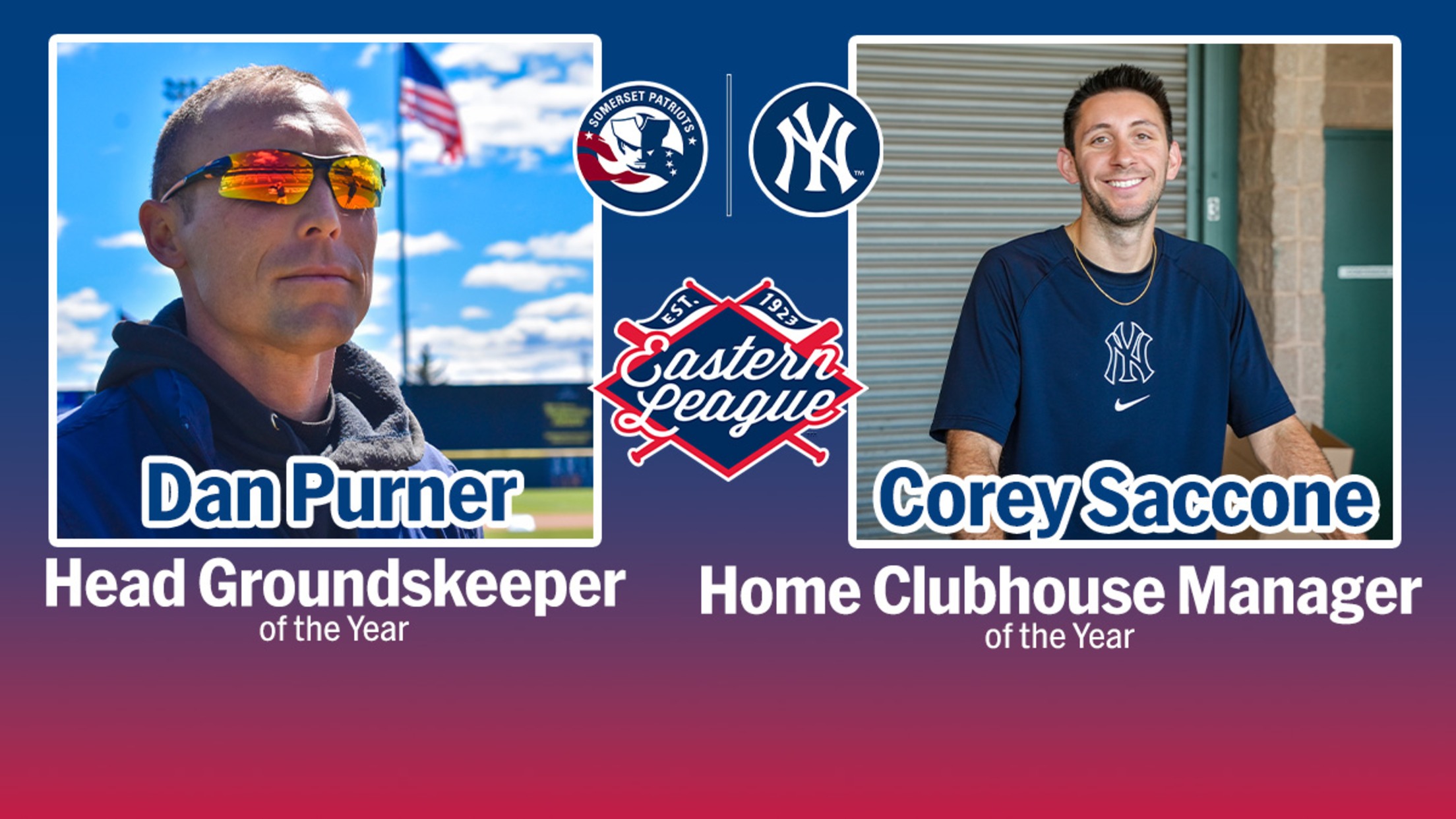 Bridgewater, New Jersey – Minor League Baseball has announced that Somerset Patriots head groundskeeper Dan Purner and home clubhouse manager Corey Saccone have been named their 2025 Eastern League Head Groundskeeper and Home Clubhouse Manager of the Year.