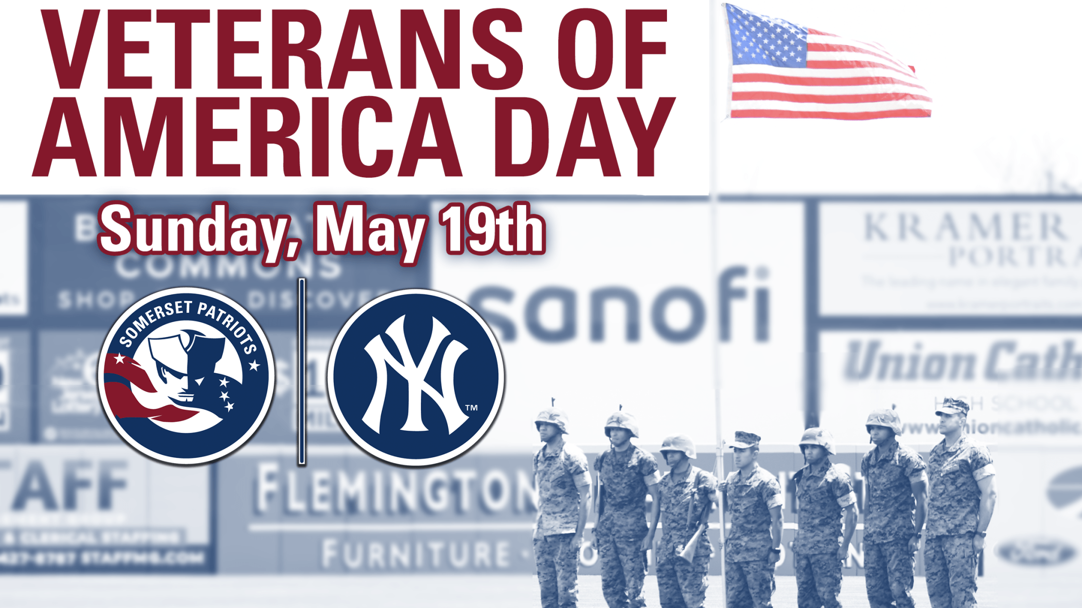 Bridgewater, New Jersey – The Somerset Patriots, the New York Yankees Double-A affiliate, have announced that the team’s annual Veterans of America Day will take place at TD Bank Ballpark on Sunday, May 19. Fans are encouraged to arrive early for a pre-game ceremony beginning at 12:00 pm prior to
