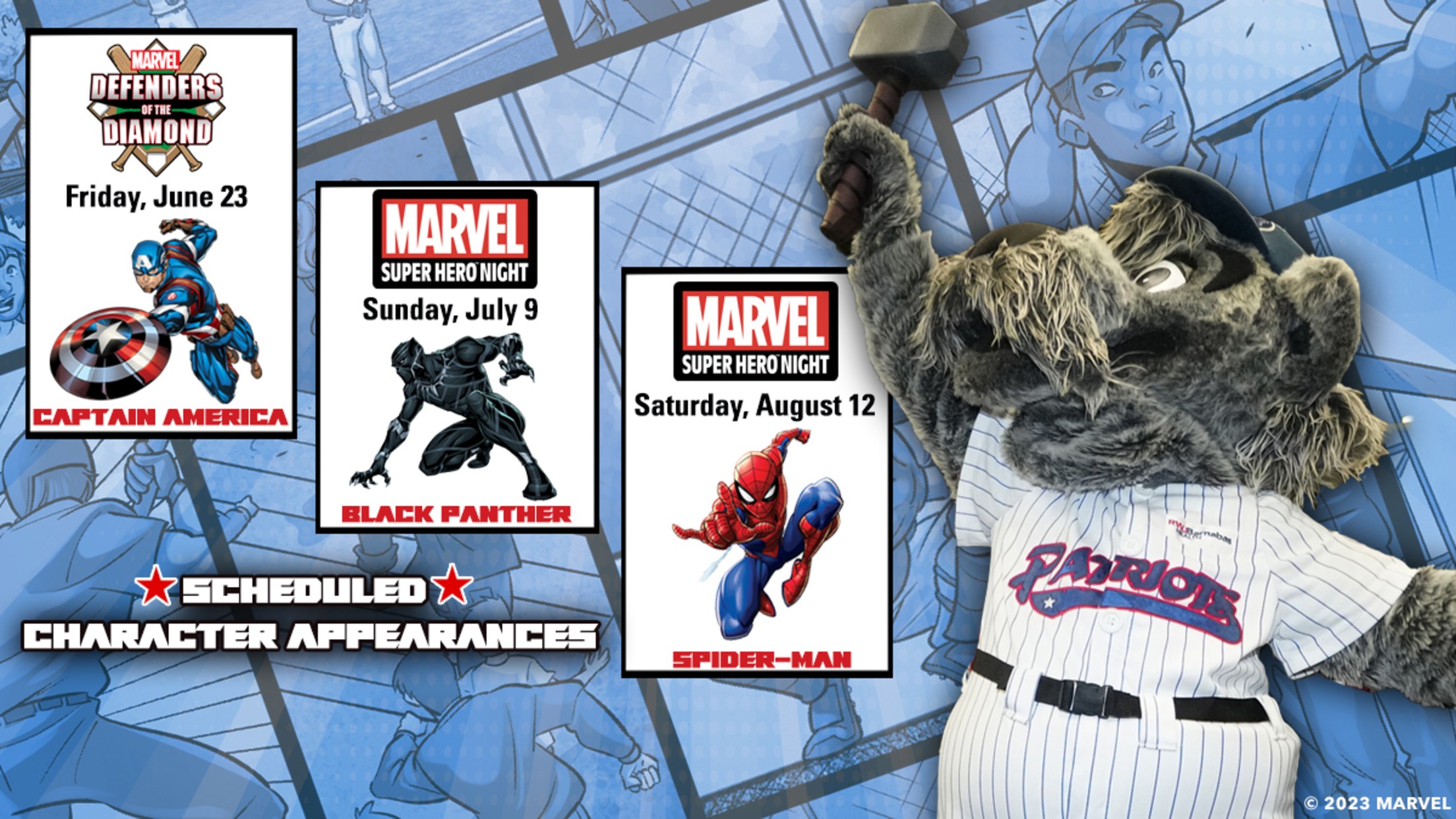 Through a ground-breaking partnership between Minor League Baseball and Marvel Entertainment, the Patriots will host the events to entertain baseball and comic book fans at the ballpark.