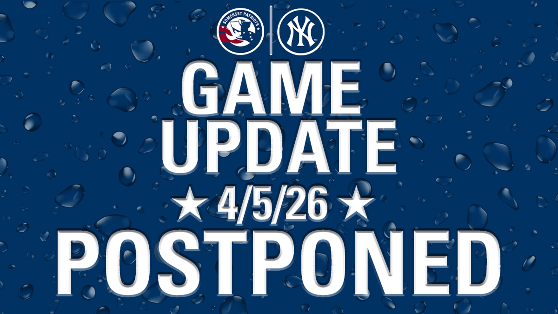 Bridgewater, New Jersey – The Somerset Patriots game scheduled for 1:05 pm on Sunday, April 5 at TD Bank Ballpark versus the Portland Sea Dogs (Boston Red Sox) has been postponed due to rain.