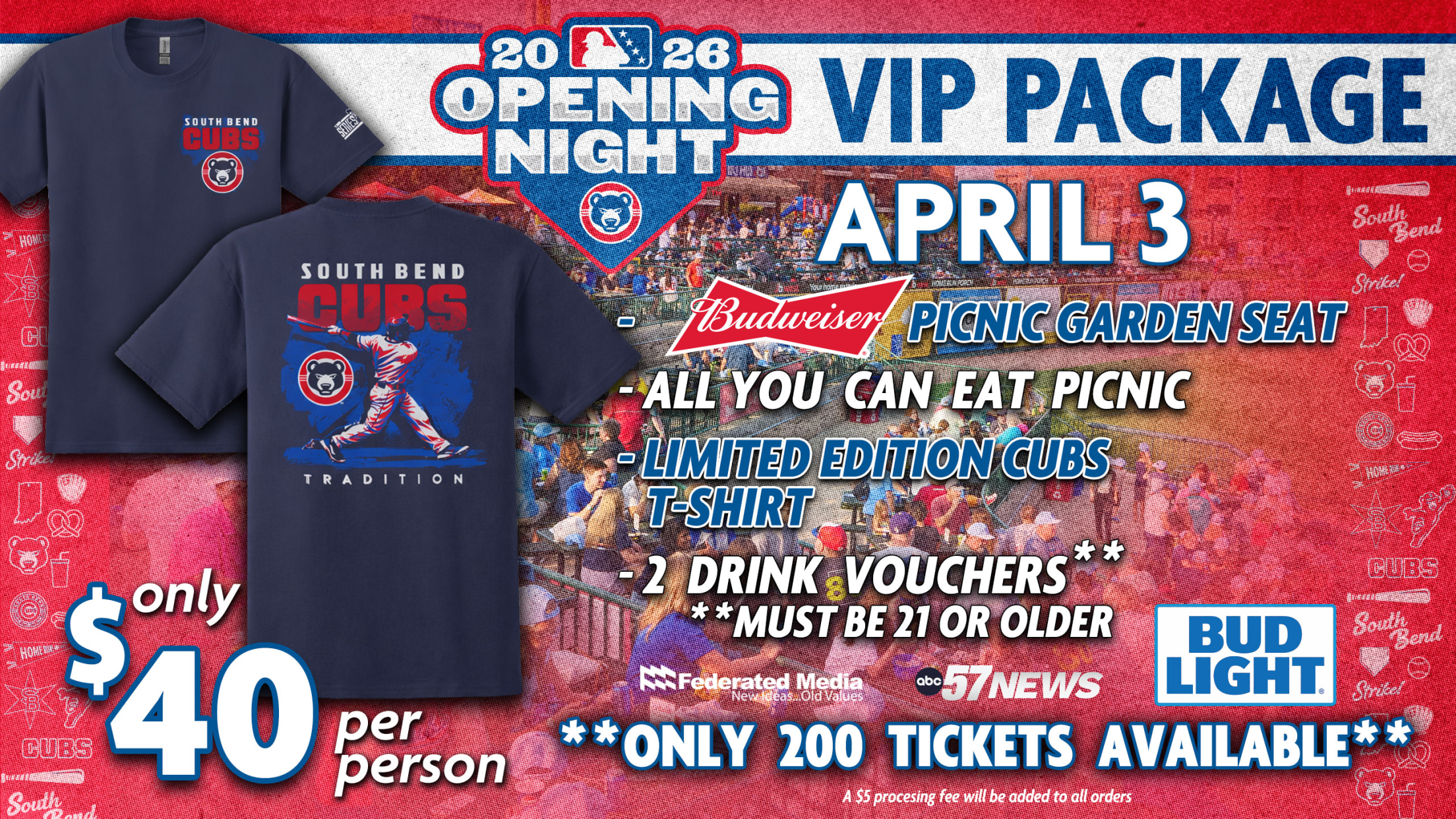 SOUTH BEND, IN - In conjunction with Major League Baseball, the South Bend Cubs have announced home game start times for the 2026 season. For the first time since 2022, the Cubs will begin the season at Four Winds Field on Opening Night, against the Quad Cities River Bandits on