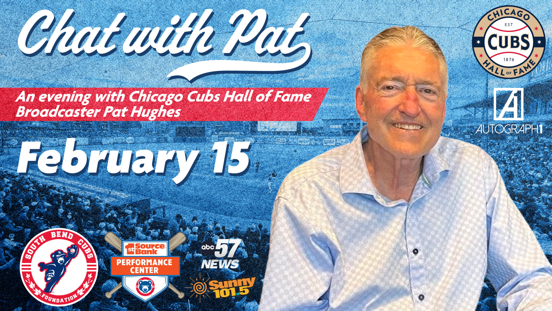 SOUTH BEND, IN – The Voice of the Chicago Cubs and National Baseball Hall of Fame broadcaster Pat Hughes will appear at the 1st Source Bank Performance Center on Sunday, February 15, for a special fundraising event benefiting the South Bend Cubs Foundation. Tickets for Chat with Pat, in partnership
