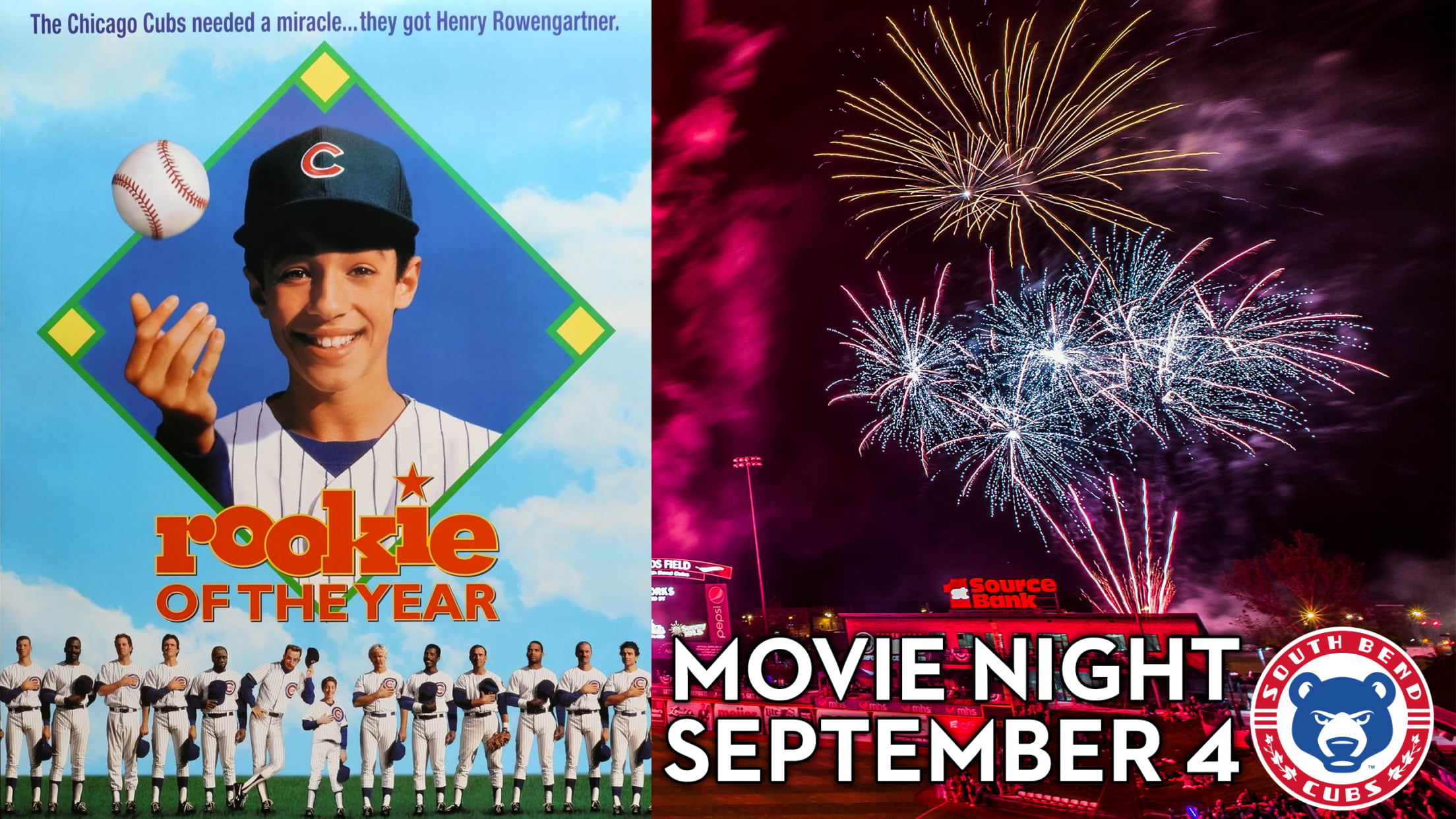 SOUTH BEND, IN – The next South Bend Cubs Movie Night will be held on Friday, September 4 at Four Winds Field presented by 1st Source Bank. Gates open at 7:00 p.m. with the film Rookie of the Year beginning at 8:00 p.m. Attendees will be treated to a grand