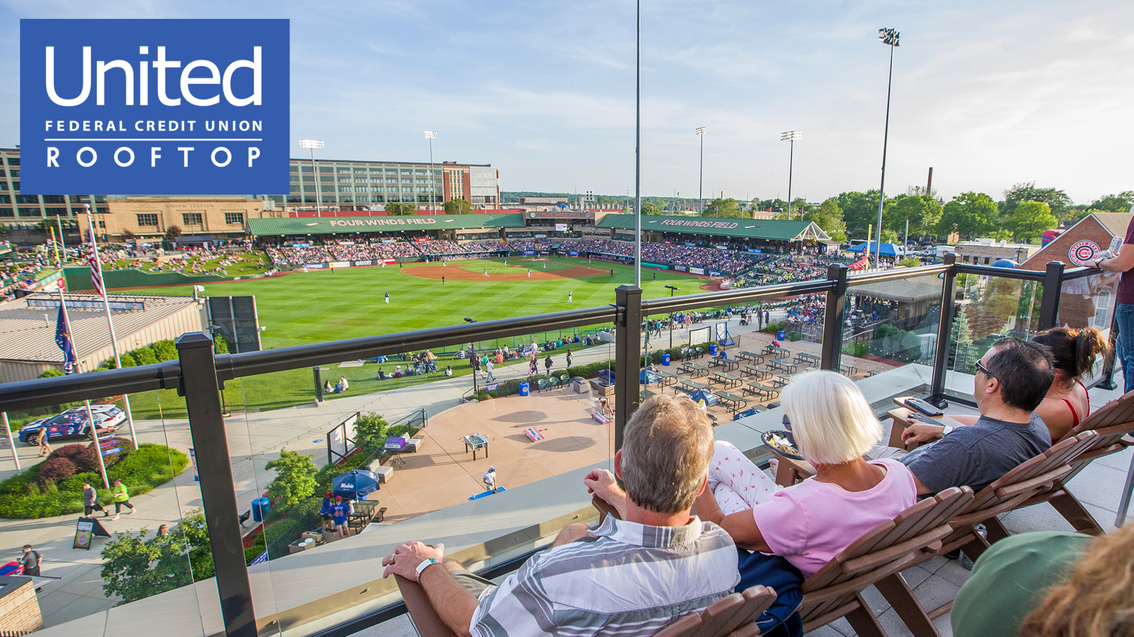 The United Federal Credit Union Rooftop, located just outside of the stadium in left field, provides a space for larger groups to enjoy a South Bend Cubs game or non-game day event with a one-of-a-kind view of Four Winds Field and Downtown South Bend.
