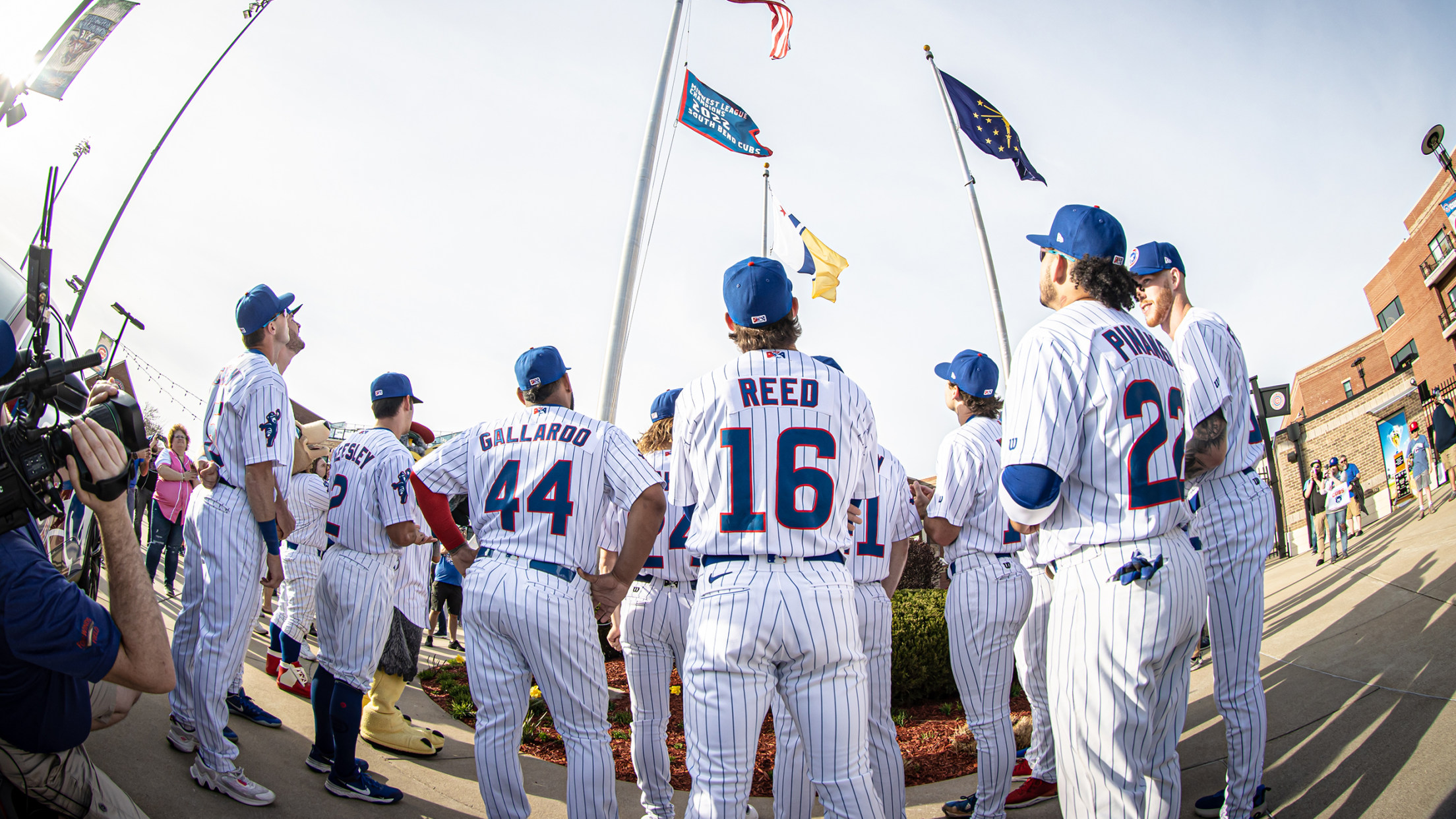 The pregame fanfare around Four Winds Field featured the second banner raising on the flag poles beyond center field in the last three seasons. Many members of the 2022 South Bend Cubs Championship team went out to Gate D to help raise the banner.