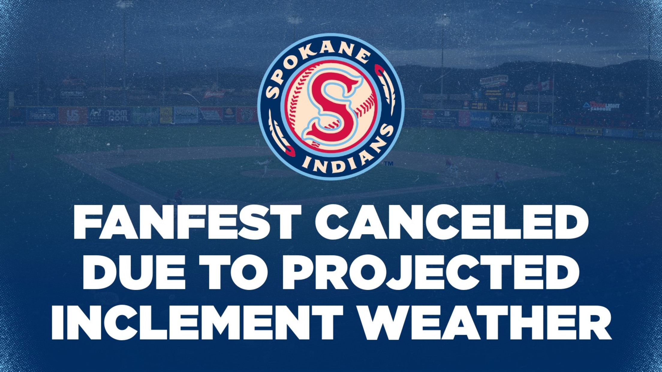 Due to forecasted inclement weather, the Spokane Indians have made the difficult decision to cancel tomorrow's Community FanFest presented by Avista and 103.5 The Game to ensure the field and stadium are at their best for Opening Night.