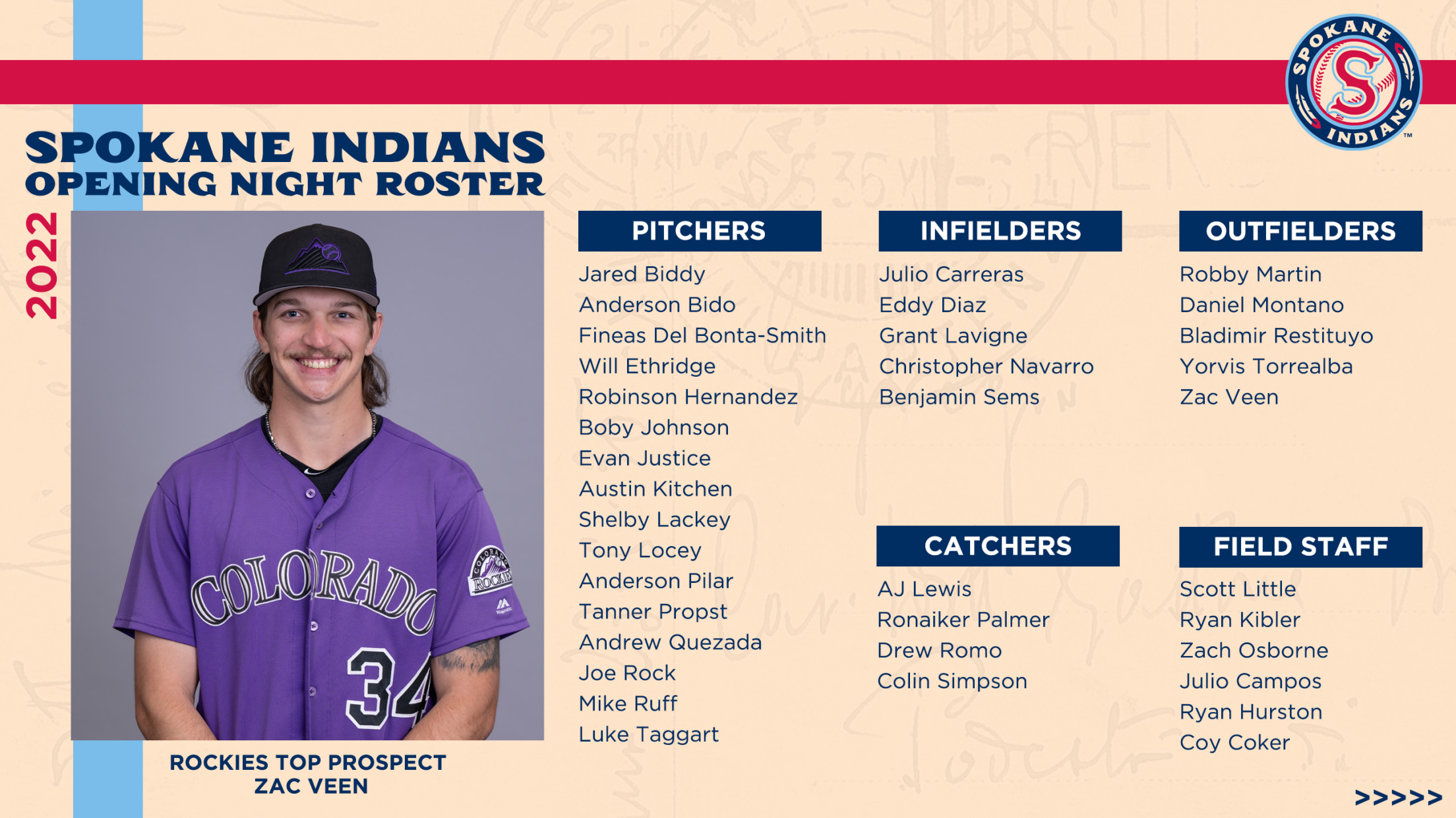 SPOKANE, Wash. - The Colorado Rockies assigned 30 players to Spokane today for the start of the 2022 Northwest League season, which opens Friday, April 8th at Avista Stadium against the Vancouver Canadians. Spokane’s roster includes 10 returning players from 2021, a pair of highly-touted prospects, and five of Colorado’s top 30 minor league players.