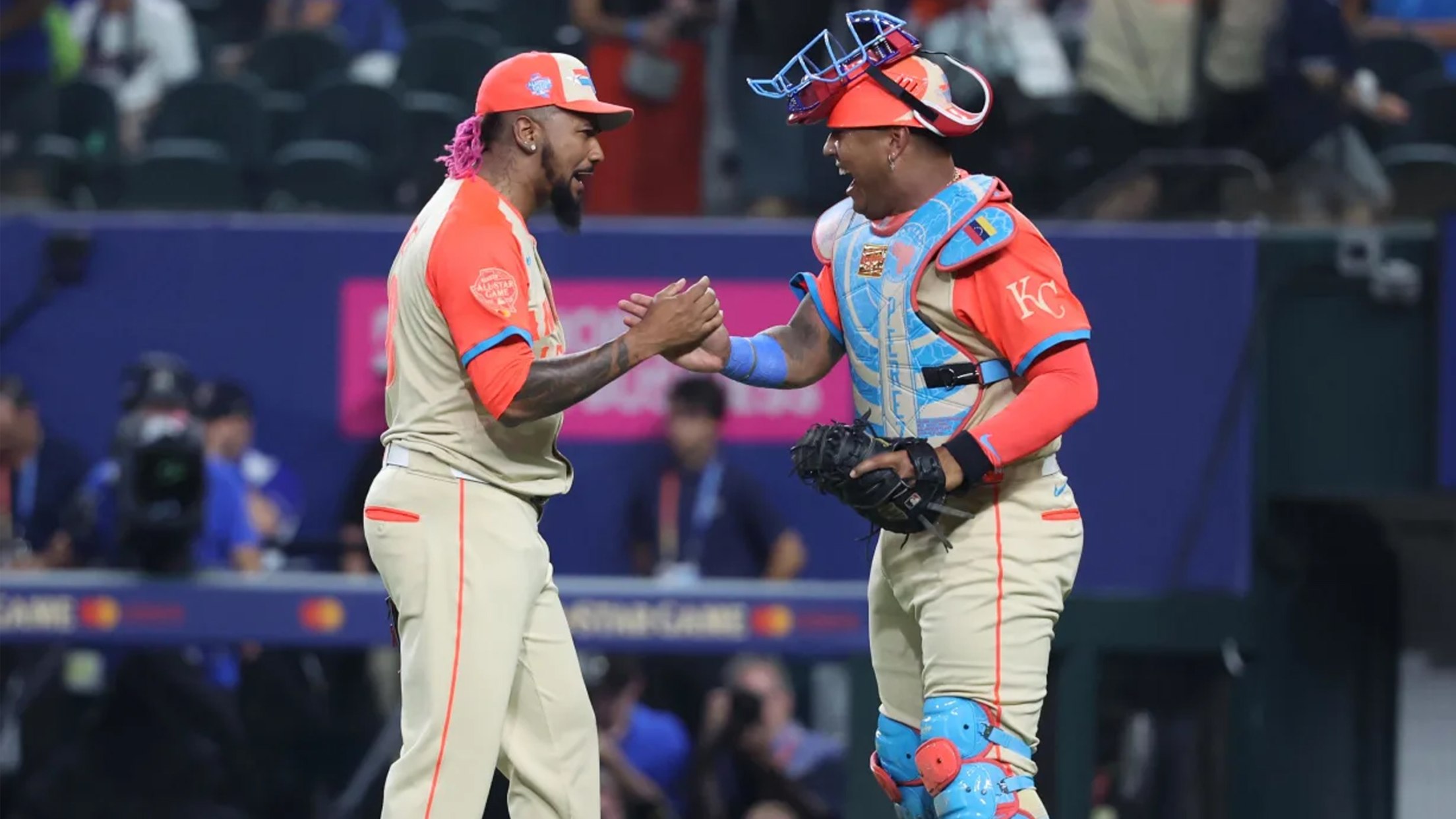 Cole Ragans took over on the mound for the American League in the sixth inning, returning to the same field where he made his big league debut as a member of the Texas Rangers in 2022. The young southpaw, who overcame a pair of Tommy John surgeries before reaching the majors, was traded to the Royals for Aroldis Chapman last summer and quickly developed into one of the game's top young pitchers in Kansas. Ragans appeared unfazed by the moment, retiring Bryce Harper on a fly ball to center before inducing an inning-ending double play from Freddie Freeman.