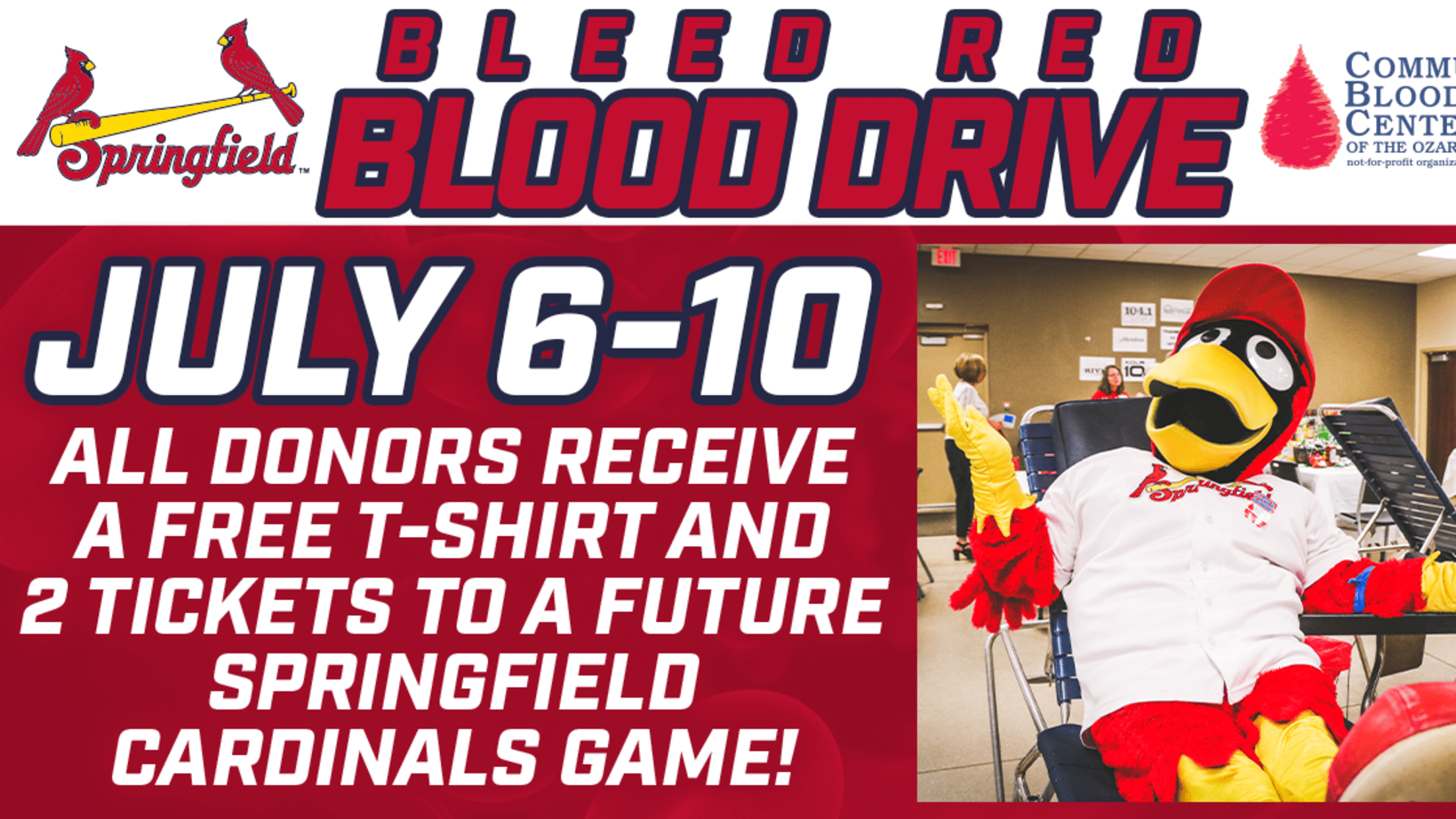 SPRINGFIELD, Mo. -- For the 16th consecutive year, the Cardinals and the Community Blood Center of the Ozarks (CBCO) are teaming up for the Bleed Red Blood Drive. The Bleed Red Blood Drive is the single largest team-affiliated blood drive in all of Minor League Baseball and has contributed to