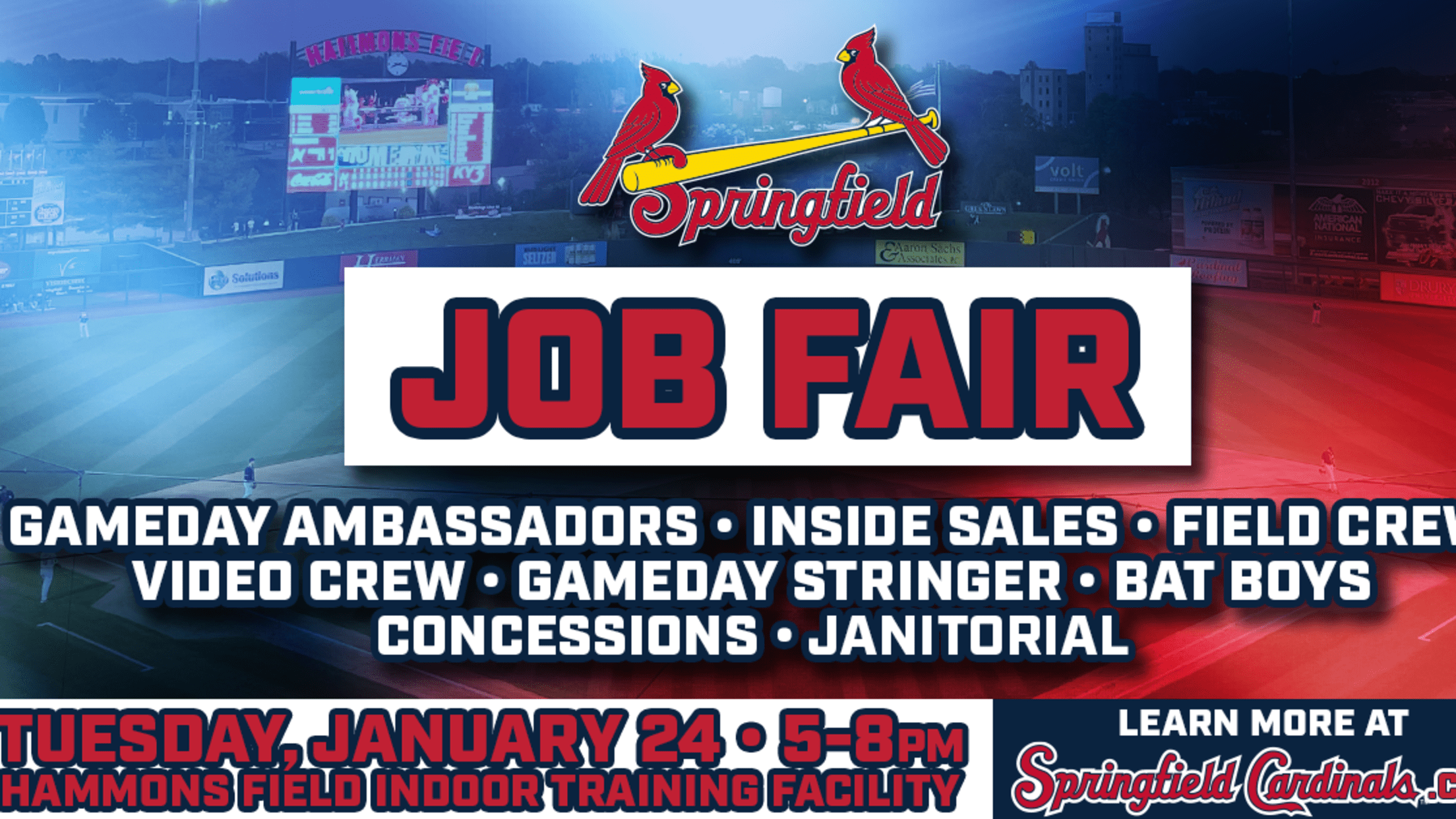 The Springfield Cardinals are excited to host their annual Job Fair to fill seasonal part-time gameday positions for the 2023 season on Tuesday, January 24th. The Job Fair will take place from 5-8pm in the Cardinals Indoor Training Facility.