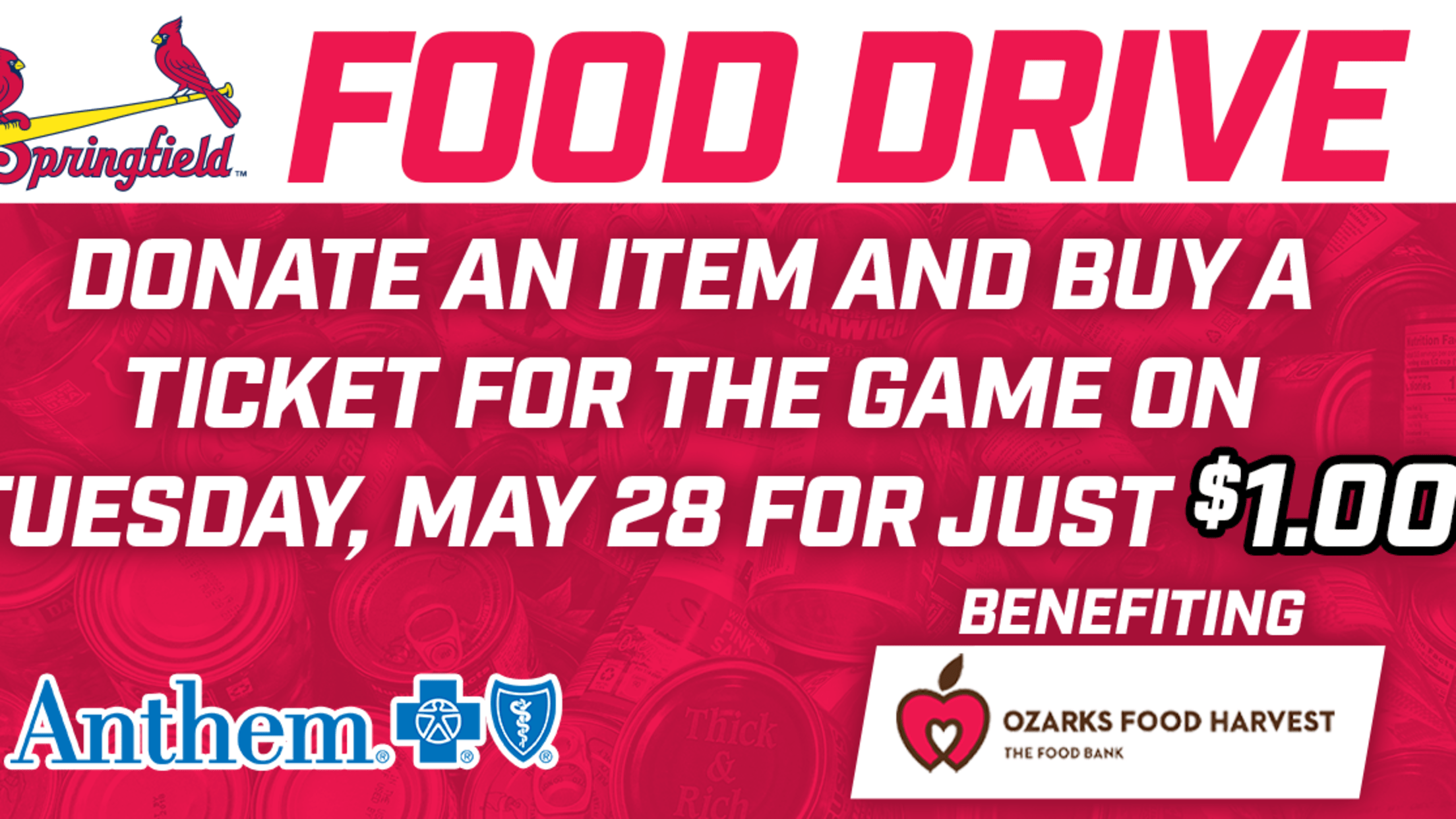 SPRINGFIELD, Mo. - The Springfield Cardinals are excited to partner with Anthem Blue Cross and Blue Shield to hold a food drive running today through the Tuesday, May 28 home game at Hammons Field.All fans that donate a non-perishable food item may purchase a discounted $1 ticket to the Springfield